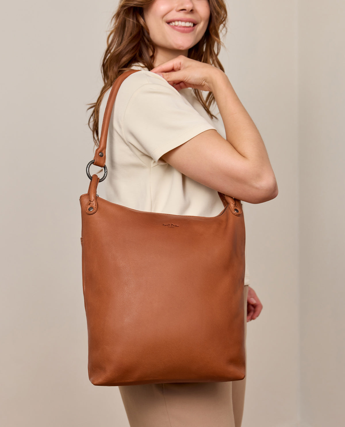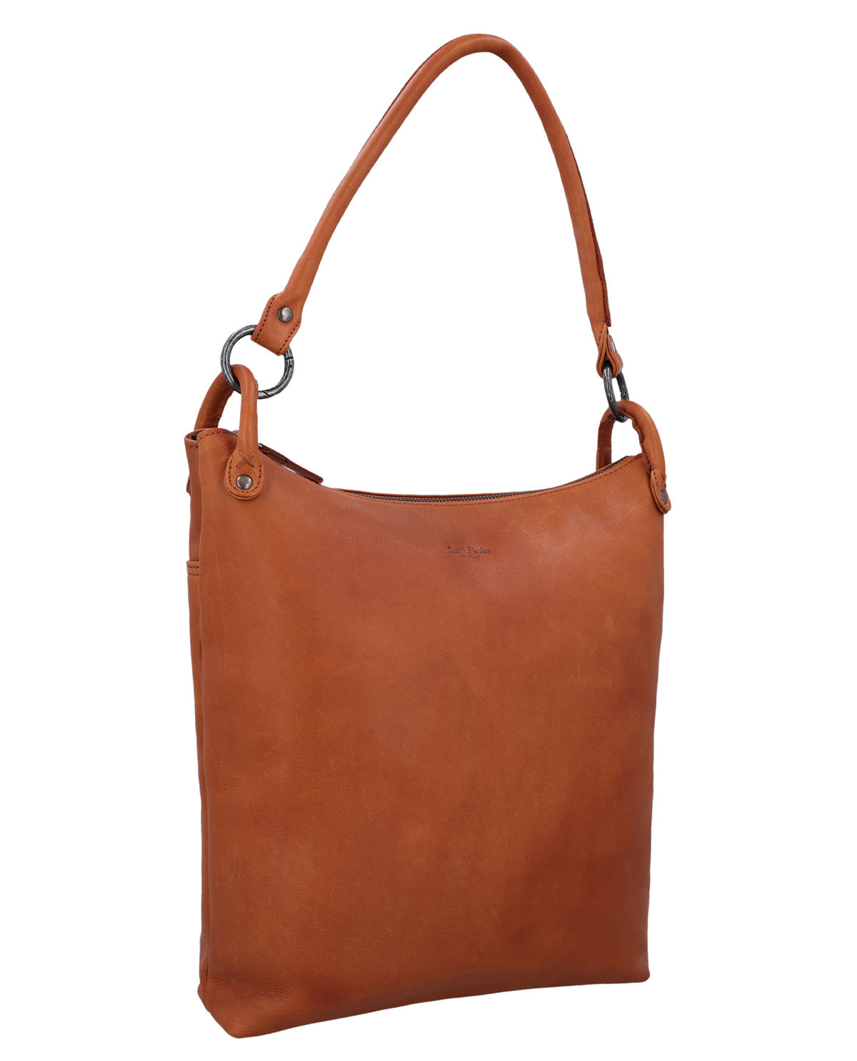 The "Cathy" Shopper is the perfect blend of practical functionality and elegant design. Made from high-quality brown leather, it impresses with robust, round handles reinforced with metal rings and featuring X-stitched leather detail. The zipper with leather pull ensures that your personal items are always safe and protected. The generous interior compartment, lined with durable cotton fabric, provides ample space for everything you need in daily life ben.