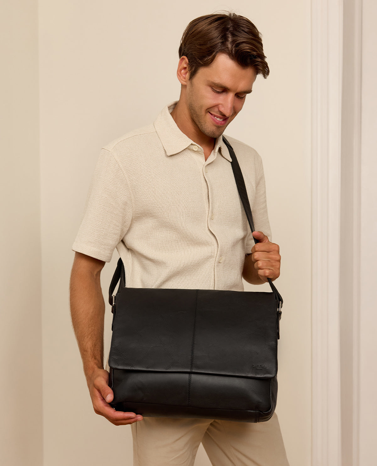Simple, stylish, and timeless – the crossbody bag „Reign“ impresses with its classic design and high-quality black leather. It is the perfect companion for everyday life, whether in the office, traveling, or during leisure time. The combination of robust material and thoughtful design makes this leather bag a must-have for style-conscious gentlemen.