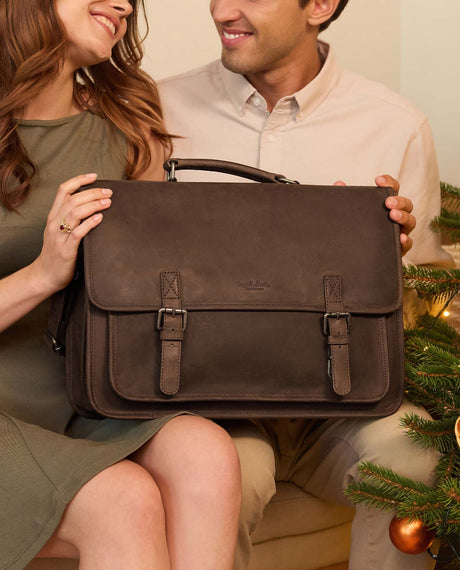 - A leather briefcase for the office is a perfect choice. Briefcases made of smooth leather have a classic, elegant look, while models with a brushed surface have a rougher finish.
