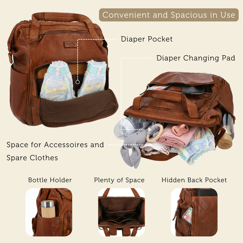 Diaper backpack stroller mom bag shoulder bag handbag backpack organizer baby bag buggy bag brown leather