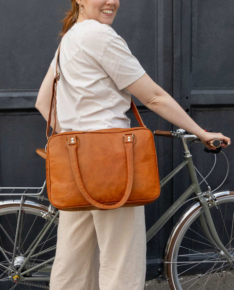 Chic laptop case that protects your laptop properly. Our real leather laptop sleeve “Christofer” is perfect for your 13-inch laptop, he keeps your laptop safe when you're on the go and stops it from getting dusty when you're at home. This chic laptop cover is made of high-quality processed vegetable-tanned goatskin leather. It protects your laptop from bumps and dents thanks to its rounded corners and integrated padding. “Christofer's” strap is made of sturdy yet flexible leather and ensures your laptop stays put when you're on the go. And the best thing is... This chic 13-inch vintage laptop sleeve will turn others green with envy as you walk into your lectures.