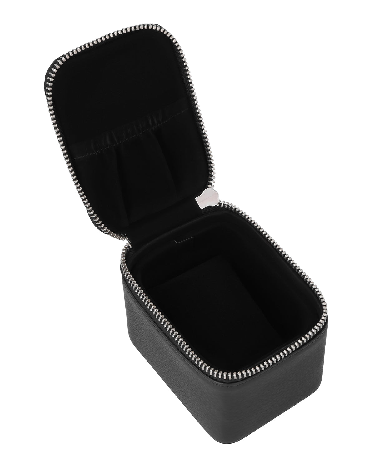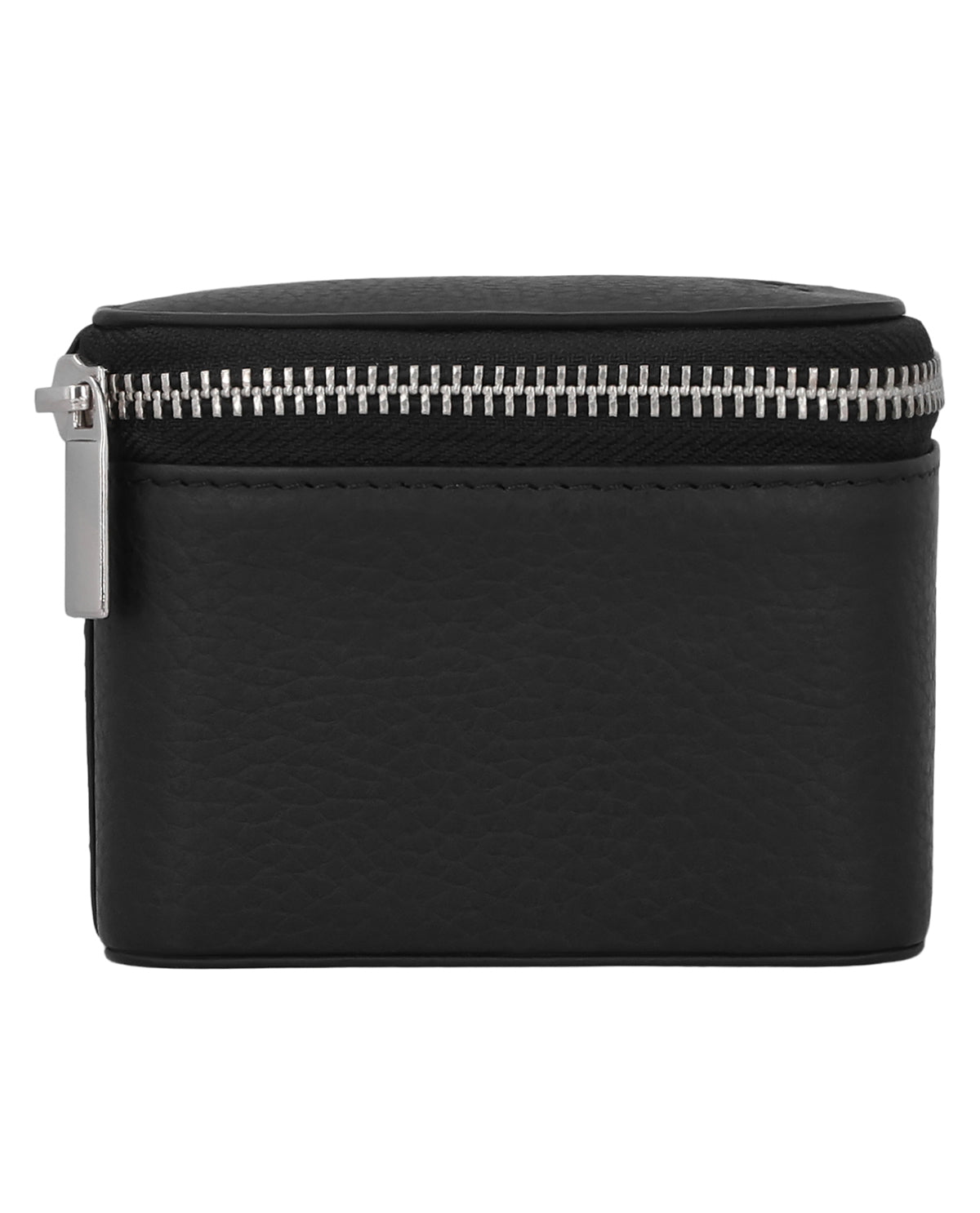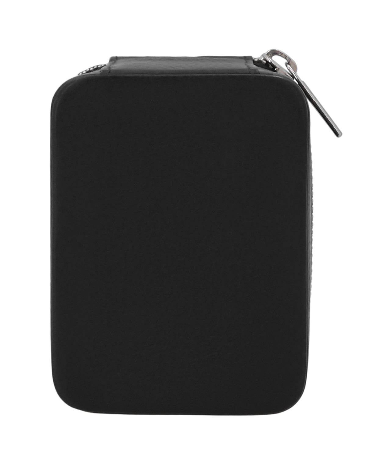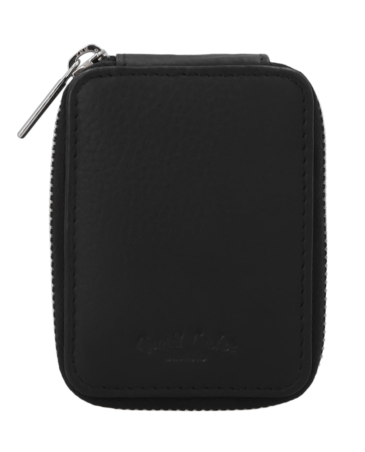 The "Hali" watch box is a black leather case for men that stores your watch stylishly and securely. The clean, masculine design is both minimalist and high-quality. A metal zipper closes the box securely and protects the contents when you are on the go or traveling. The Gusti logo on the top emphasizes the characteristic brand image without being obtrusive.