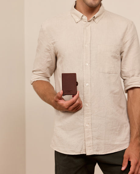 Our keychain "Shelton" is the ideal gift for your loved ones or even for yourself if you want to pamper yourself. Made from 100% genuine leather, the keychain not only offers high durability but also a pleasant softness. It shines in a trendy vintage look and perfectly matches your style. Whether for apartment, garden, or work keys – with "Shelton" all keys look great and are ready to hand in your handbag or backpack in no time.
