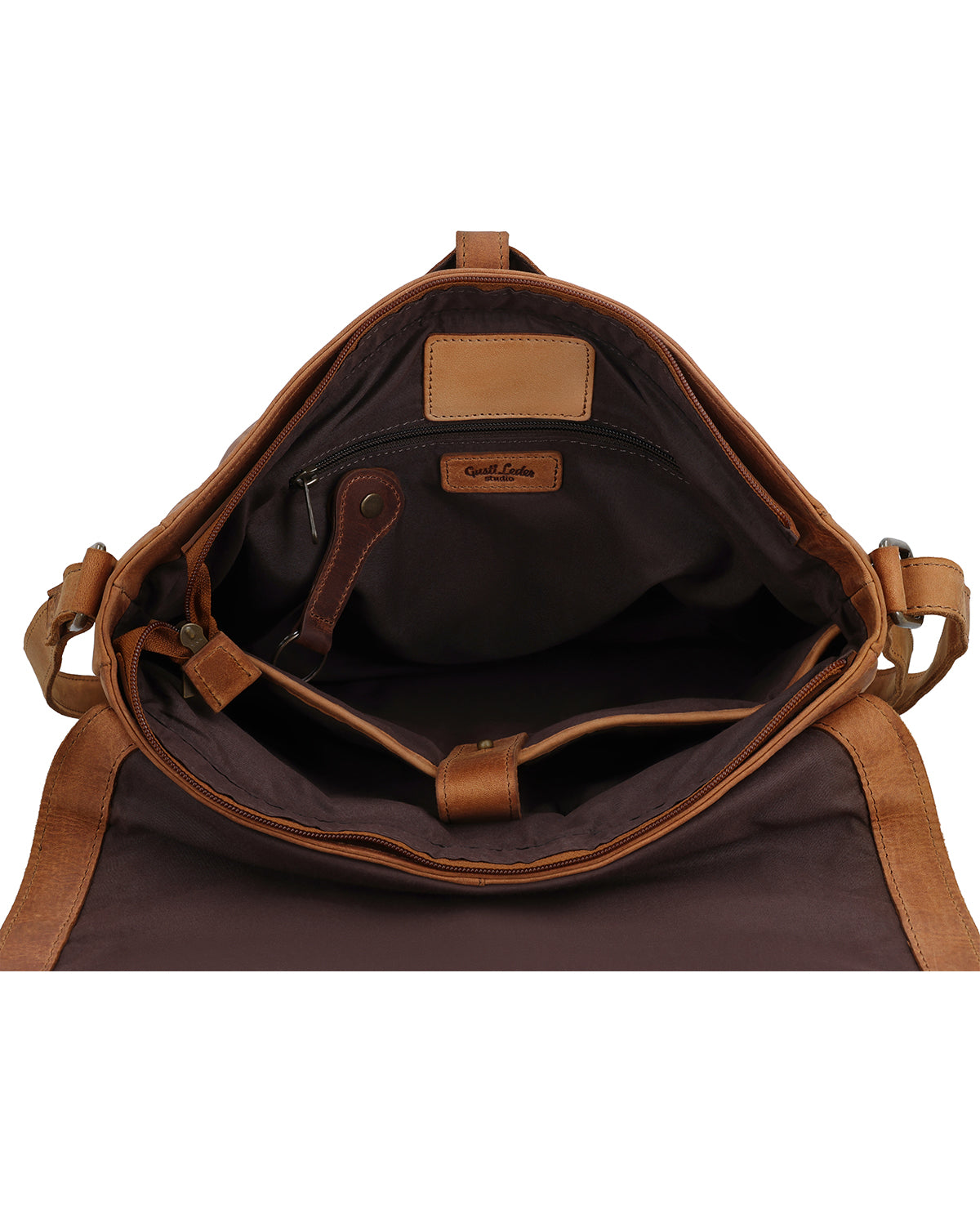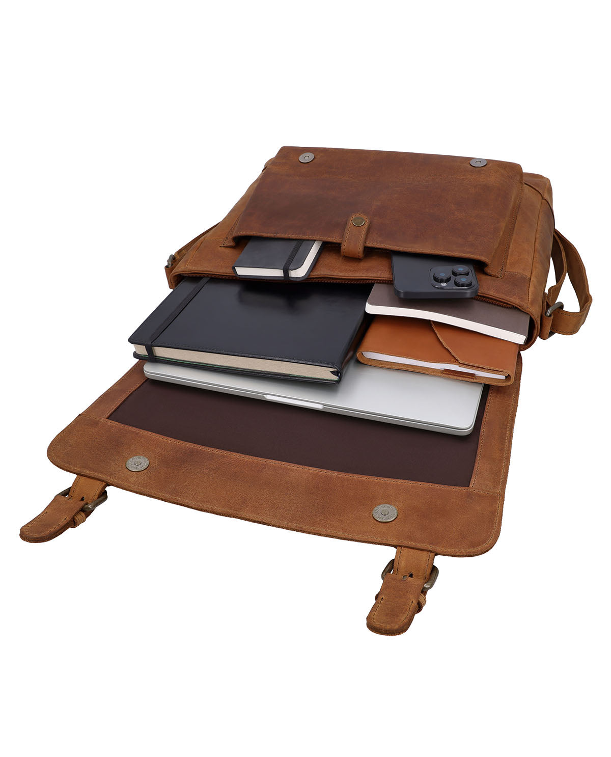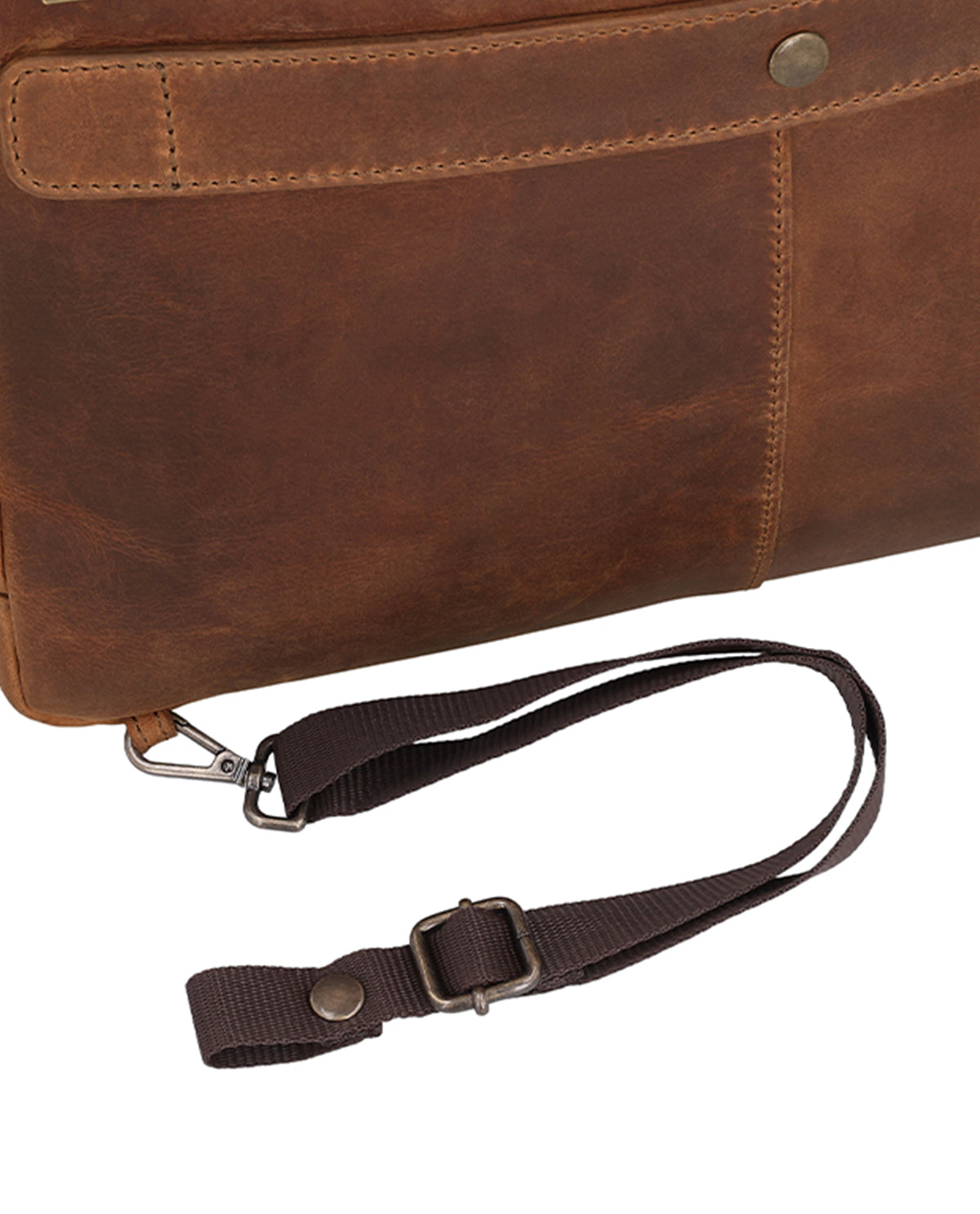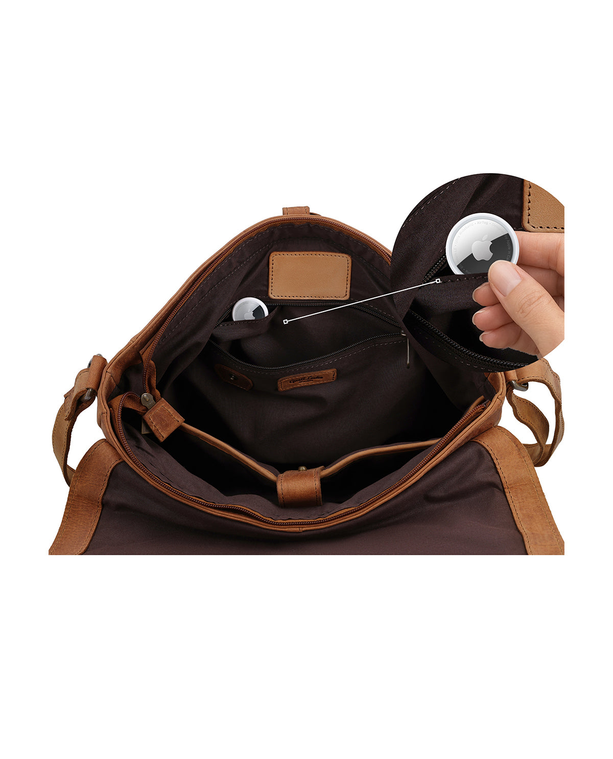 The “Brin” business bag is a brown leather bag for men and women that brings structure to your day without feeling stiff. It accompanies you to the office, to appointments, or on trips, combining a clean, professional look with thoughtful features. For peace of mind on the go, a hidden AirTag compartment is integrated, while a removable keychain ensures you won’t have to search for important items for long. Inside, a laptop compartment reliably protects your device, complemented by a slip pocket with a snap closure and a zippered compartment to keep documents, cables, or smaller essentials neatly stowed away. The main zipper closure, supplemented by magnets, combines security with easy everyday use.