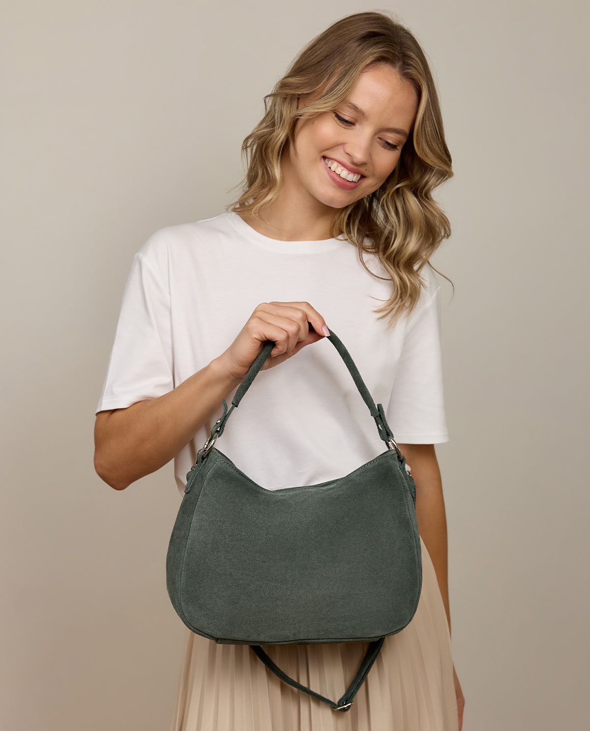 The "Marcella" handbag is the perfect companion for modern everyday life. With its elegant design made from high-quality leather and a long, adjustable shoulder strap that can be removed, it combines both style and flexibility. You can carry it either as a crossbody bag or with the additional short strap – depending on your preference. Whether for a city stroll, a business meeting, or an evening with friends, "Marcella" complements your outfit with a special touch and ensures you are always well-organized.