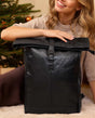 Our “Bendik” roll-top backpack is the perfect companion, no matter if you’re going to school, uni or work. He’ll win you over with his flexibility, comfort, and space. This sturdy, classic daypack made of black leather stands out from the crowd with its trendy roll top—a look that you just can’t ignore at the moment.