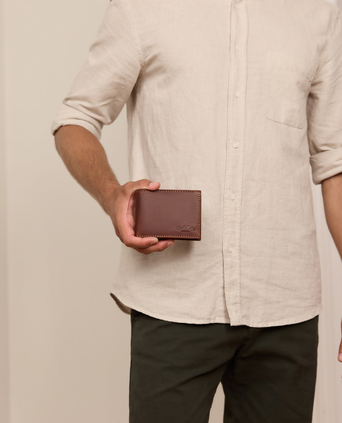 “Lewi” is the perfect place to keep your cash. This cool vintage leather wallet is the perfect companion for fashionable guys everywhere. He's made of high-quality cowhide leather, which makes him particularly sturdy. You can take on anything life throws at you with “Lewi”. He helps you handle the stress and makes sure you always look good. Is there anything more stylish than a sleek wallet? “Lewi” exudes classic and casual retro charm that never goes out of style.