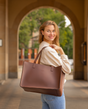 The extra-large interior of "Agatha" provides ample space for your 15-inch laptop, water bottle, wallet, notebooks, keys, and pencil case. Additionally, the large opening offers enough storage space for a spontaneous shopping trip. The leather carry handles complete the design, while the option to personalise "Agatha" with an engraving makes it a particularly unique gift. This bag not only meets the demands of your everyday life but also supports an industry committed to environmental protection and fair labor practices. A must-have for anyone who wants to combine functionality and style.