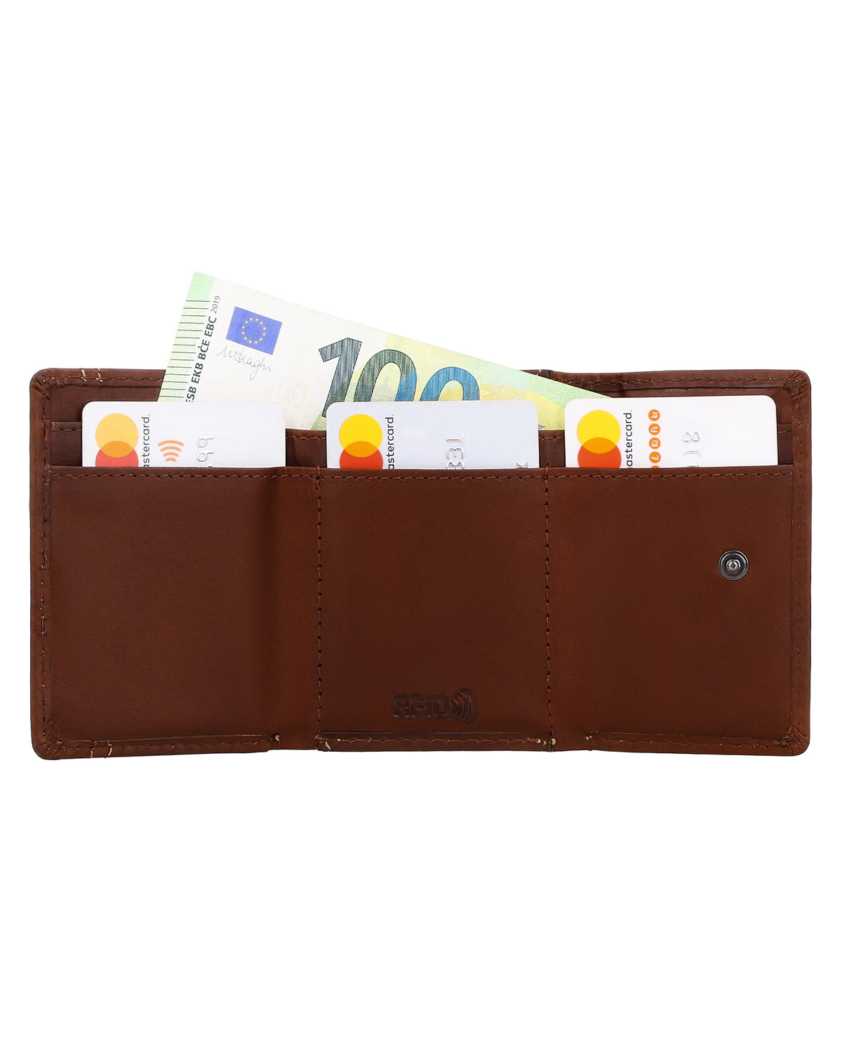 "Ronald" impresses on the inside with 3 slip pockets, a bill compartment, and a coin compartment at the front, which closes with a snap fastener. This means that nothing can fall out and everything stays organized. For fans of small change, there is also an extra coin compartment for a single coin – perfect if you want to have a suitable coin quickly to hand. Ronald also has a slip pocket at the back for easy access.