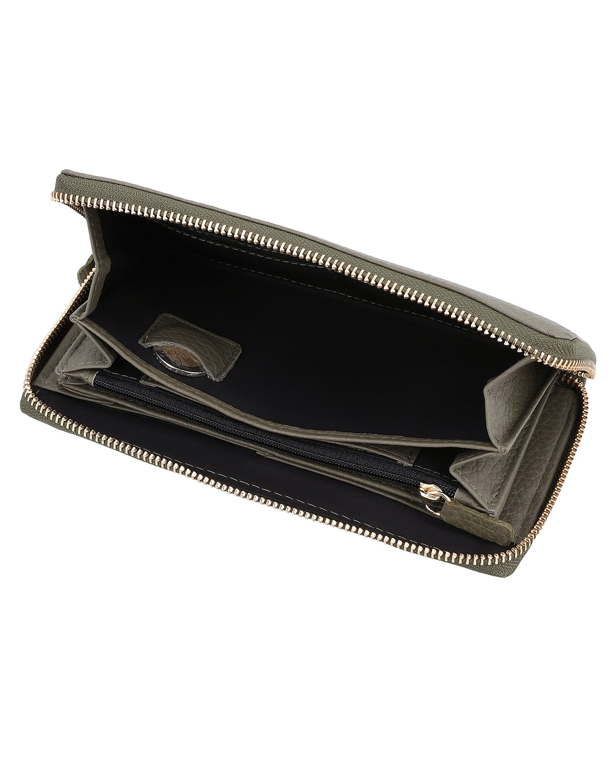 Inside, Cara has 5 interior compartments – so you have space for all your small and large bills and coins. The two exterior compartments offer space for 10 cards. In the middle is a coin compartment with a zipper – and as a particularly practical extra, there is an additional coin compartment for a single coin, so you can sort your change even faster and keep it handy. Next to the coin compartment, there is space for your bills on both sides. There is also a zippered compartment at the back for souvenirs. A large, all-around zipper reliably protects your belongings so that nothing can fall out. "Cara" is a real all-round package when it comes to wallets!
