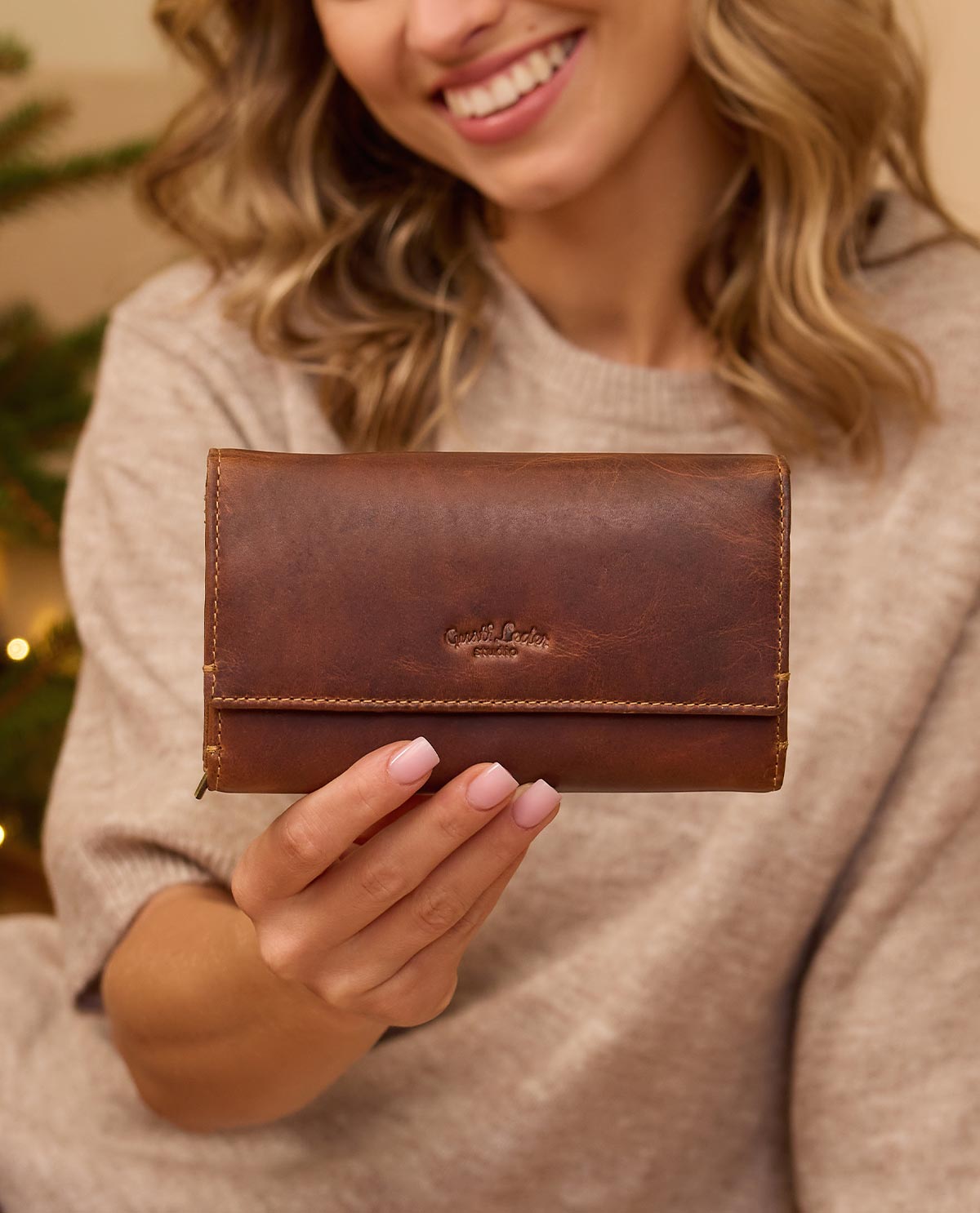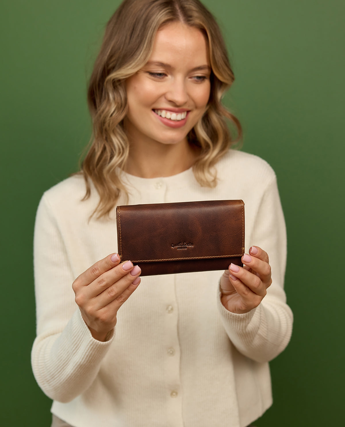 Geldbörse Portemonnaie Brieftasche Geldbeutel Damen Designed in Berlin Braun Leder