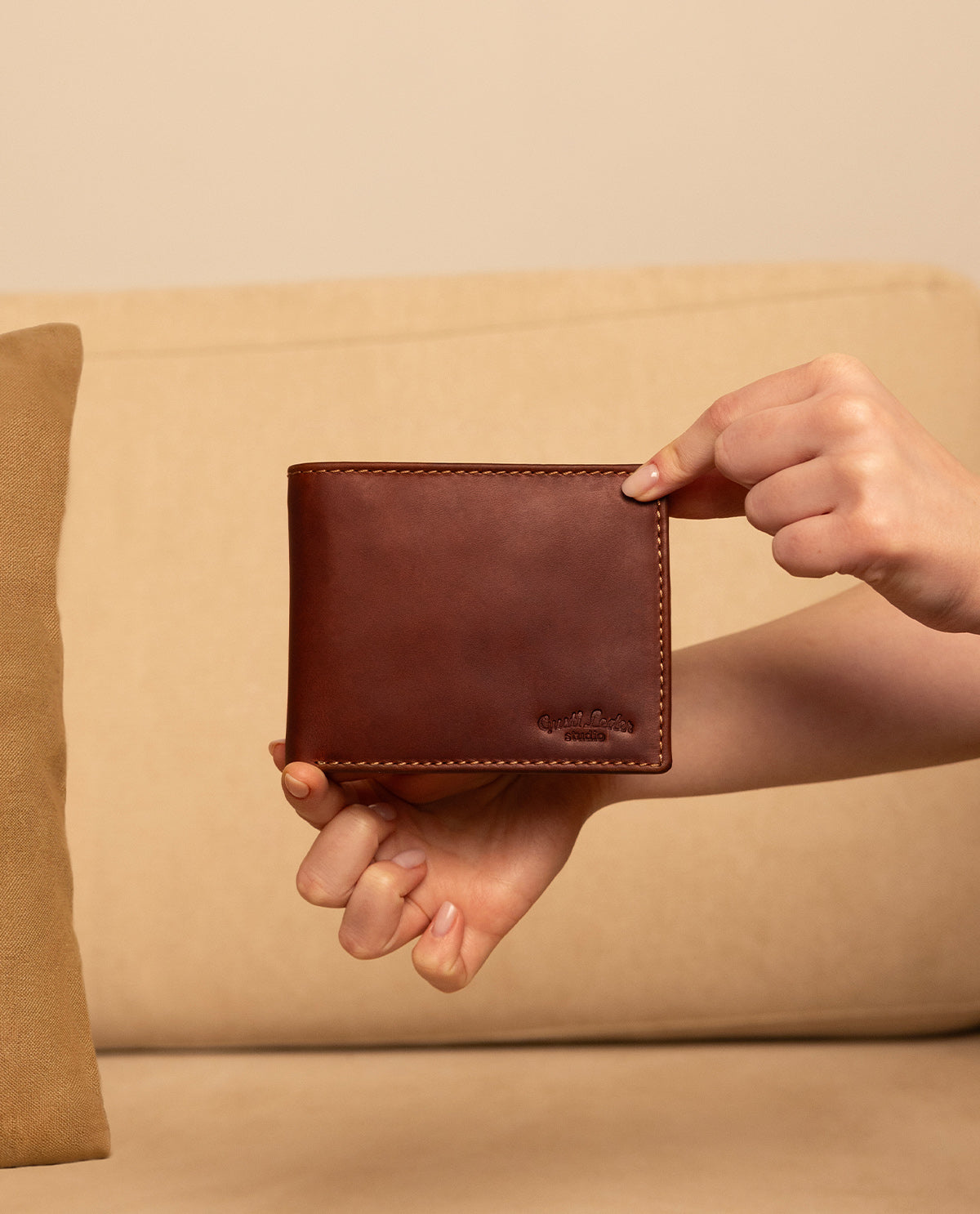 Im Inneren bietet „Pawel RFID“ ein gut strukturiertes Ordnungssystem mit zwei Geldscheinfächern, einem Münzfach mit Druckknopf sowie 11 Steck- und Einschubfächern für Deine Karten. Im Münzfach findest Du zusätzlich ein separates 1-€-Münzfach, das Dir schnellen Zugriff ermöglicht. Das integrierte Flipfach mit großem Sichtfenster eignet sich ideal für Ausweis, Führerschein oder Fotos Deiner Liebsten. Dank des eingebauten RFID-Schutzes macht „Pawel RFID“ es Unbefugten nahezu unmöglich, Deine Daten auszulesen – für maximale Sicherheit.