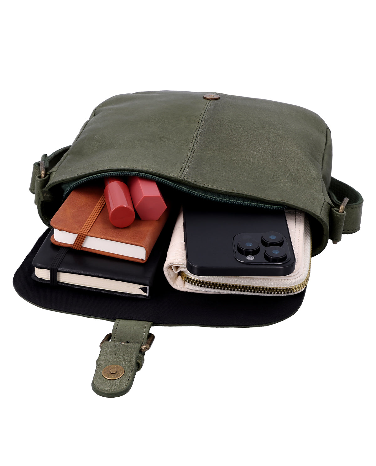 „Candice“ begeistert durch ihr harmonisches Design und bietet gleichzeitig überraschend viel Stauraum. Neben Portemonnaie, Smartphone und Schlüsseln passen sogar ein eBook-Reader oder ein klassisches Taschenbuch hinein. Das rückseitige Reißverschlussfach schützt Deine wichtigsten Habseligkeiten nah am Körper, während das äußere Zipperfach schnellen Zugriff auf oft benötigte Dinge ermöglicht. Der Magnetverschluss in Dornschnallenoptik sichert das Hauptfach zuverlässig. Der bodenständig-schicke Vintage-Look macht „Candice“ zum perfekten Begleiter für Spaziergänge, Städtetrips und Kaffeedates. Mit jeder Nutzung erweist sie sich als treue Begleiterin, gefertigt unter fairen, nachhaltigen Bedingungen – für Stil, Funktion und bewusstes Handeln.