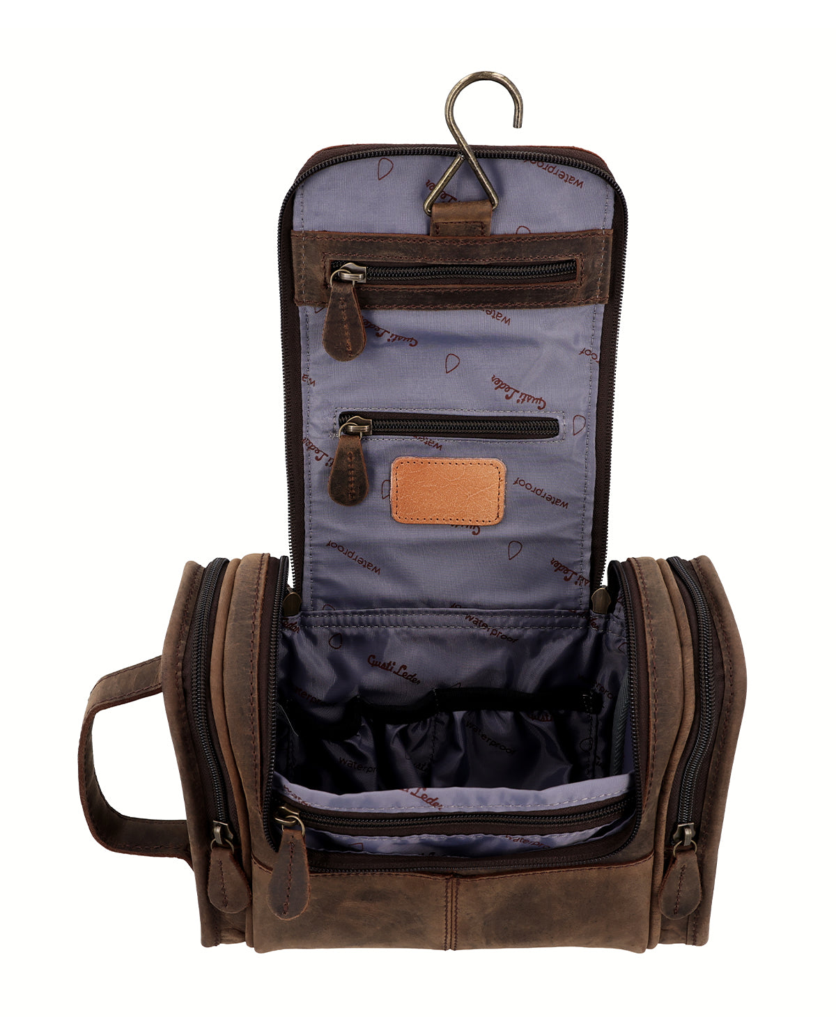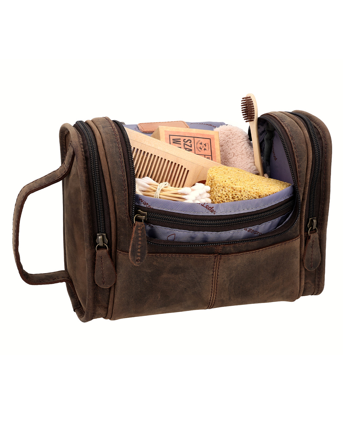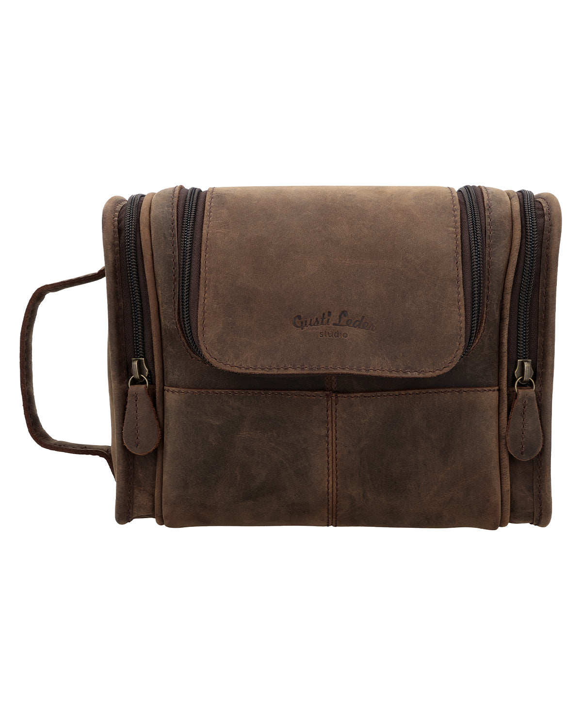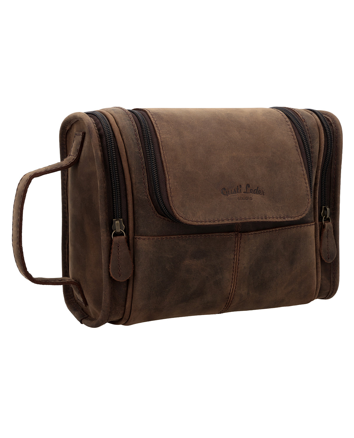 Wärst Du ein kleines Wichtelmännchen, könntest Du in dieser Waschtasche super Verstecken spielen. „Chester“ bietet unglaublich viele Möglichkeiten, all Deine Hygieneartikel sicher zu verstauen. Neben seinen vielseitigen Taschen sorgt er auch für die nötige Praktikabilität, wenn alles ordentlich verstaut sein muss. In den beiden Seitentaschen ist alles gut untergebracht. Durch den praktischen Haken kannst Du „Chester“ in jedem Bad dieser Welt einfach aufhängen. Der wasserabweisende Innenraum verzeiht auch kleine Shampoo-Malheure. Und weil es bei Gusti Leder nicht nur um Funktionalität geht, kommt unsere Kulturtasche zudem äußerst stylisch daher. Um dem noch die Krone aufzusetzen, kannst Du zwischen stylischem Braun und elegantem Schwarz wählen. Was will man mehr? Mit dieser intelligenten Waschtasche bist Du auf Reisen jederzeit gut ausgestattet. Inspiriert durch den urbanen Berliner Großstadt Flair verbindet „Chester“ Style mit Funktion.