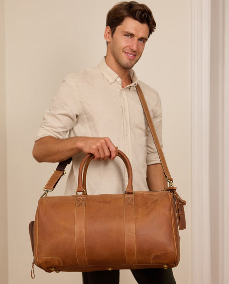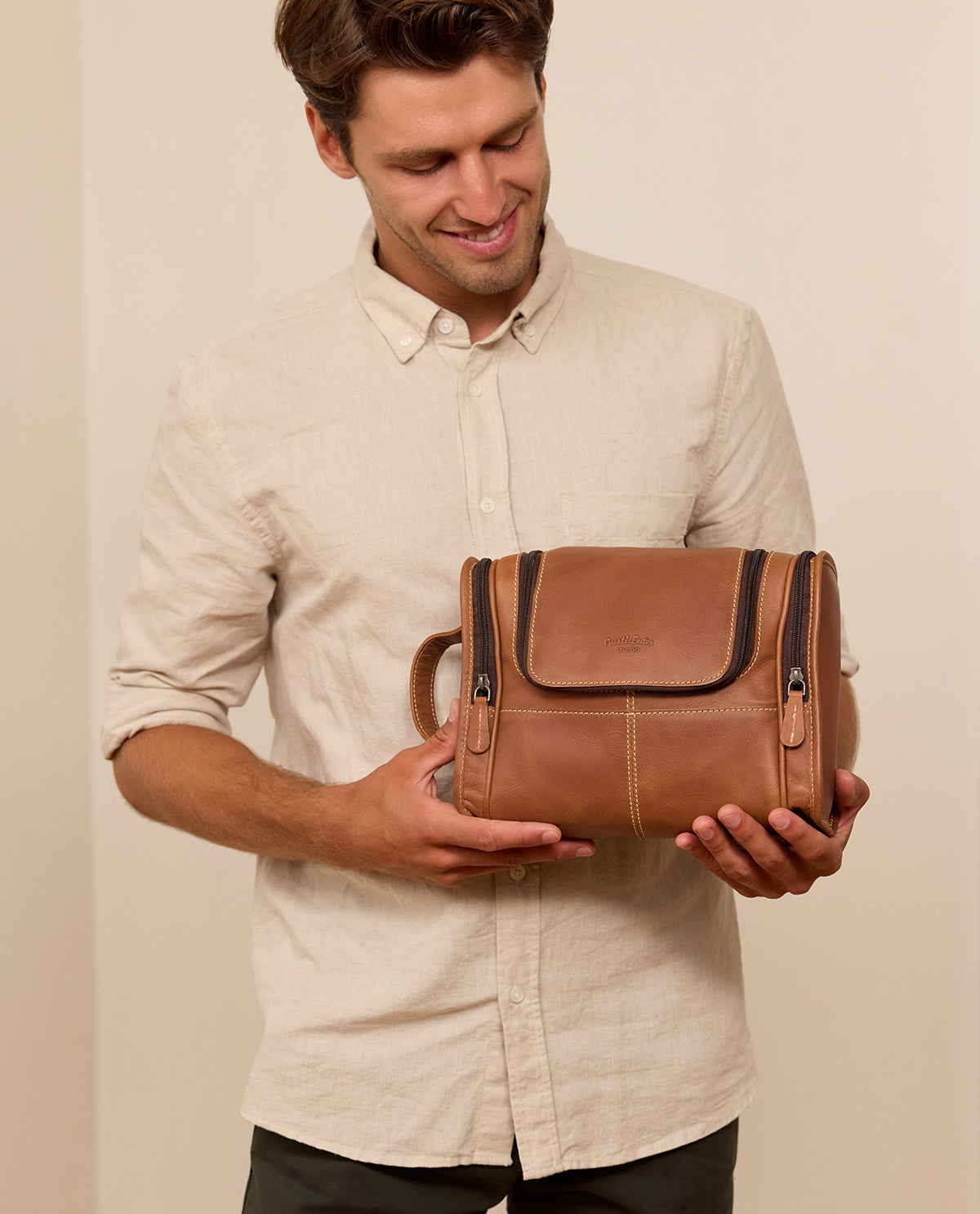 Praktisch und elegant – die "Chester" Kulturtasche aus braunem Leder