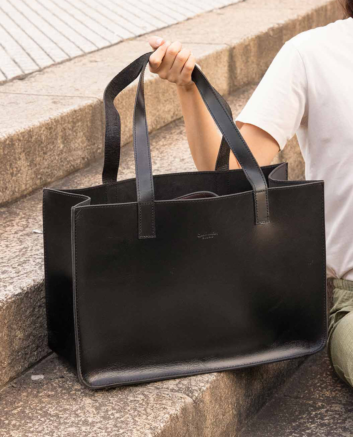 Das extragroße Innenfach von Agatha hat genug Raum für dein 15 Zoll Notebook, deine Trinkflasche, Geldbörse, Notizbücher, Schlüssel und Stifteetui. Damit Du Deine Essentials noch smarter organisieren kannst, verfügt Agatha über einen abnehmbaren Schlüsselringhalter – so sind Deine Schlüssel sofort griffbereit. Für extra Sicherheit unterwegs gibt es außerdem ein dezentes AirTag-Fach, damit Du Deine Tasche jederzeit leichter wiederfindest. Wichtige Kleinigkeiten kannst Du zusätzlich sicher in einem Innenfach mit Reißverschluss verstauen. Die Tragehenkel aus echtem Leder runden das Design ab, während die Möglichkeit zur Gravur Agatha zu einem besonders persönlichen Geschenk macht. Diese Tasche wird nicht nur deinem Alltag gerecht, sondern unterstützt auch eine Branche, die sich für Umweltschutz und faire Arbeitspraktiken einsetzt. Ein Must-Have für alle, die Funktionalität und Stil vereinen möchten.