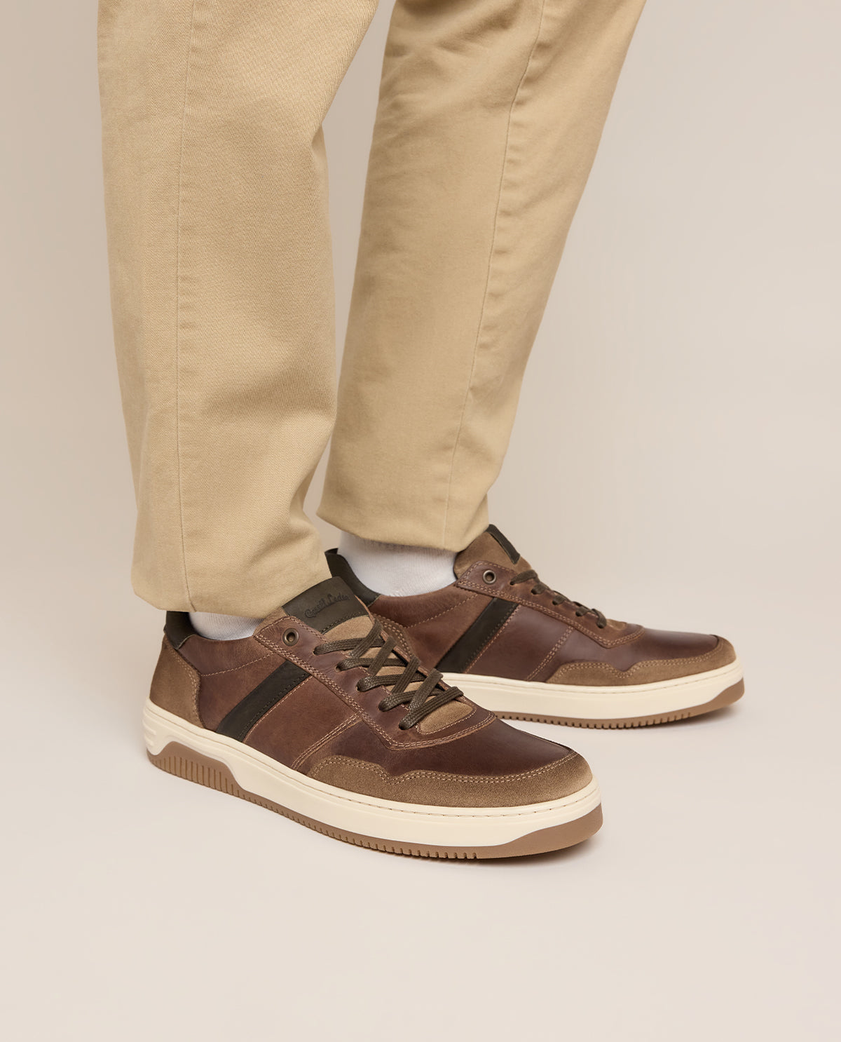 Das Innenfutter aus Kunststoff in warmem Braunton sorgt für Atmungsaktivität und ein angenehmes Tragegefühl. Die bequeme Innensohle passt sich sanft Deinem Fuß an und verleiht Dir optimalen Halt, während die rutschfeste Gummisohle für Stabilität auf jedem Untergrund sorgt. Durch den klassischen Schnürverschluss kannst Du den Schuh individuell an Deinen Fuß anpassen – perfekt für Alltag, Freizeit oder City-Spaziergänge. Mit "Samy" erlebst Du ein Laufgefühl, das Komfort und Eleganz harmonisch vereint – ein Sneaker, der zu jedem Anlass überzeugt.
