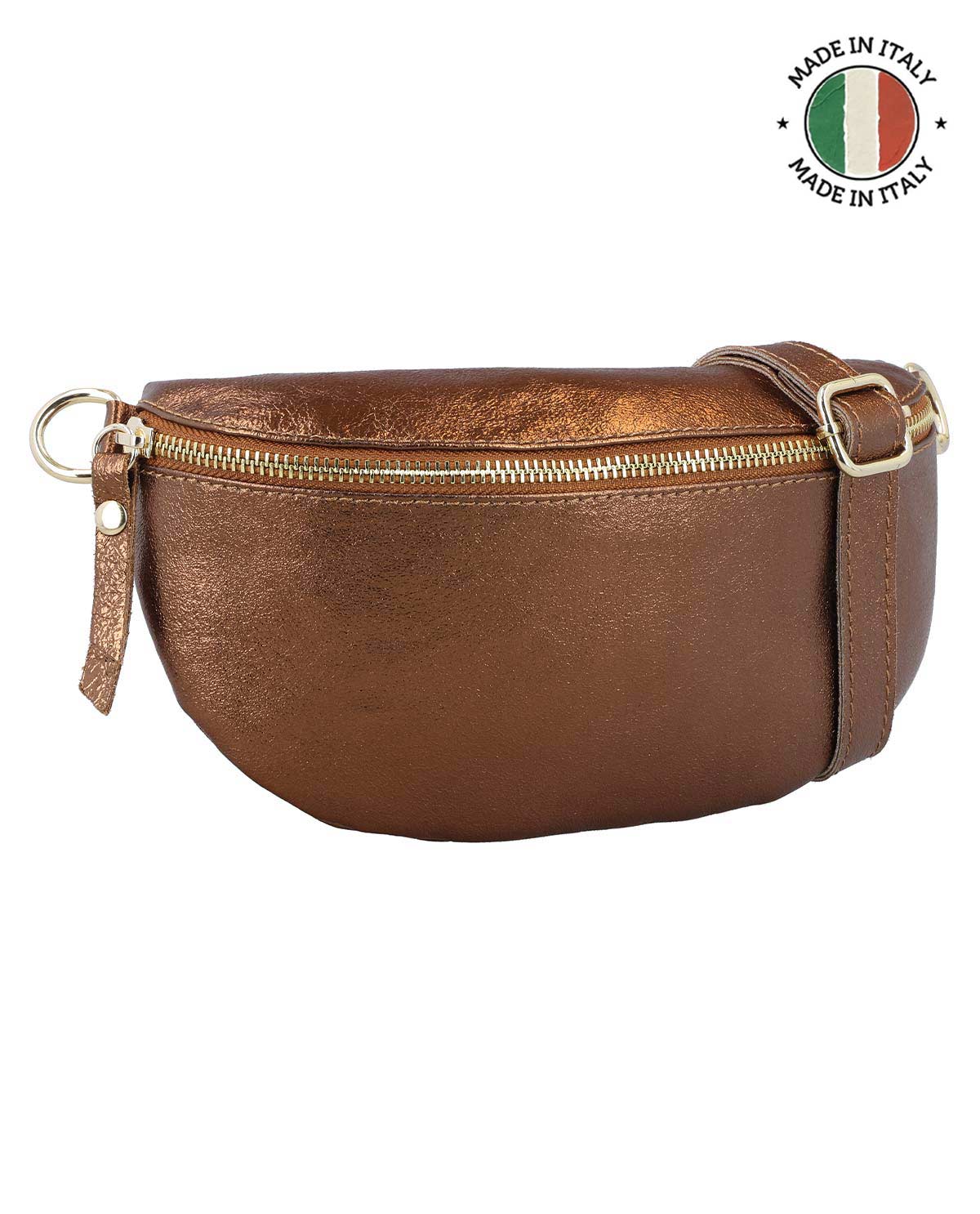 Die "Brinja" Umhängetasche besticht durch ihr elegantes Design und ihre hohe Funktionalität. Mit der markanten, halbrunden Silhouette und dem vollständigen Reißverschluss entlang des oberen Randes bietet sie nicht nur ausreichend Platz für Deine Essentials, sondern auch Sicherheit für all Deine persönlichen Gegenstände. Das hochwertige Leder verleiht ihr eine edle Optik, die sich perfekt in Deinen modernen Alltag einfügt. Im Inneren findest Du zudem das fein eingeprägte "Made in Italy"-Logo, das die Herkunft und Qualität dieser Tasche eindrucksvoll unterstreicht.