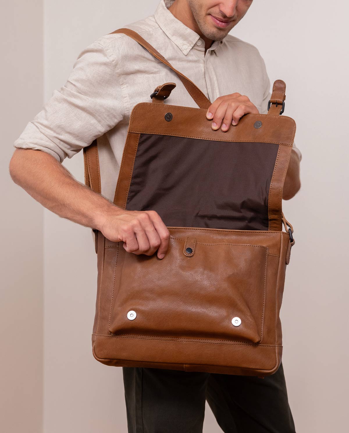 Die "Attila" Laptoptasche aus hochwertigem Leder ist der perfekte Begleiter für Deinen Arbeitsalltag. Sie vereint modernes Design mit durchdachter Funktionalität, um Deine wertvollen Geräte sicher und stilvoll zu transportieren. Mit einem gepolsterten Laptopfach, das durch einen Lederriemen und einen Klettverschluss optimal geschützt wird, ist Dein Laptop immer sicher verstaut. Zusätzlich sorgt das praktische Schlüsselband im Hauptfach dafür, dass Du Deine Schlüssel immer griffbereit hast. Dank des robusten Materials und der sorgfältigen Verarbeitung ist diese Tasche sowohl langlebig als auch elegant.