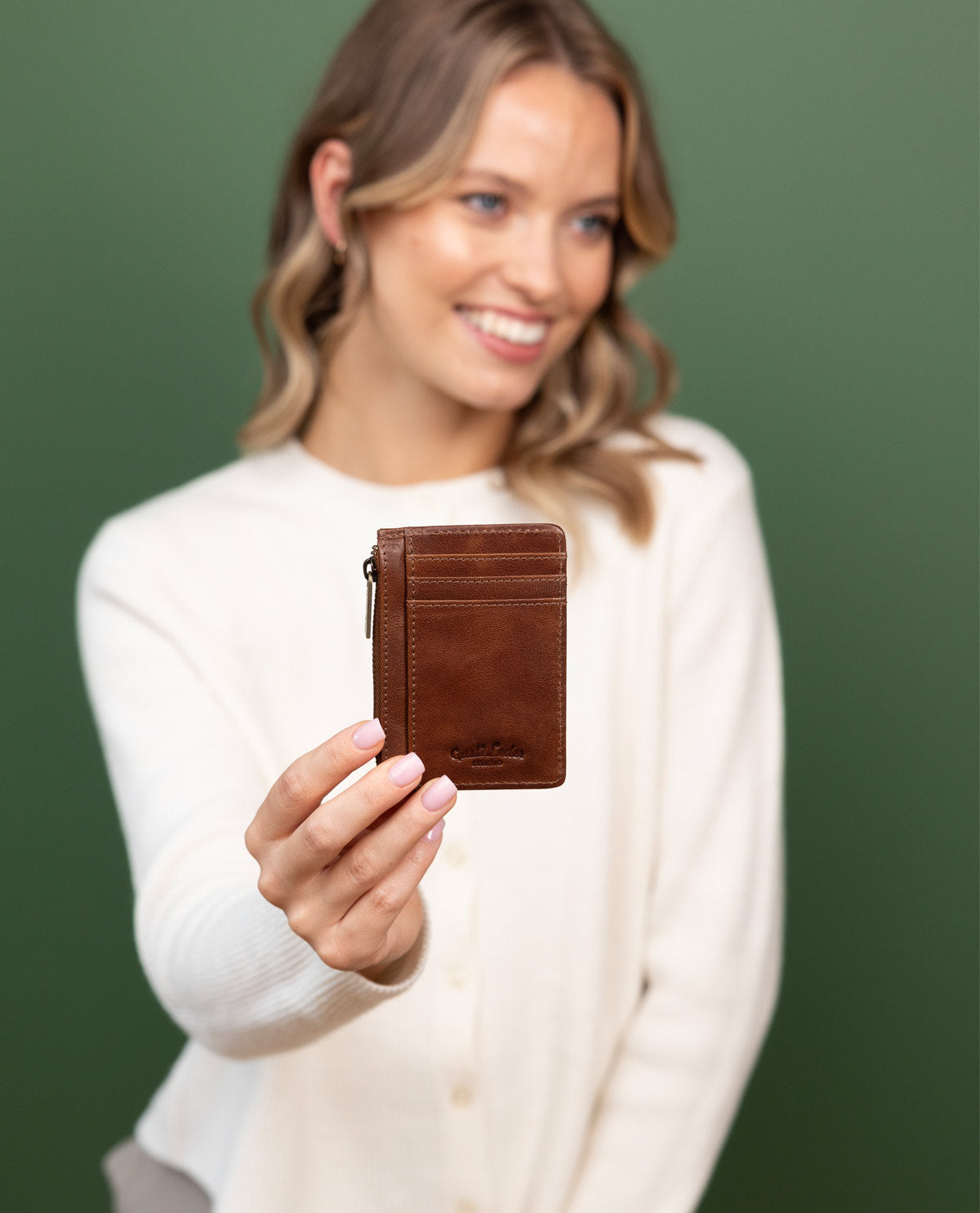 Geldbörse Kartenetui Portemonnaie Damen Herren Braun Leder
