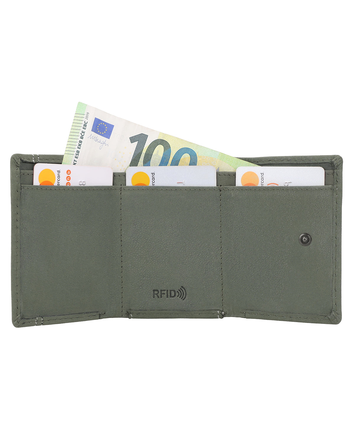 "Ronald" überzeugt im Inneren durch 3 Einschubfächer, einem Geldscheinfach und einem Münzfach auf der Vorderseite, welches mit einem Druckknopf geschlossen wird. So kann nichts rausfallen und alles bleibt geordnet. Zusätzlich verfügt "Ronald" noch über ein Einschubfach hinten - für den einfachsten Zugang.