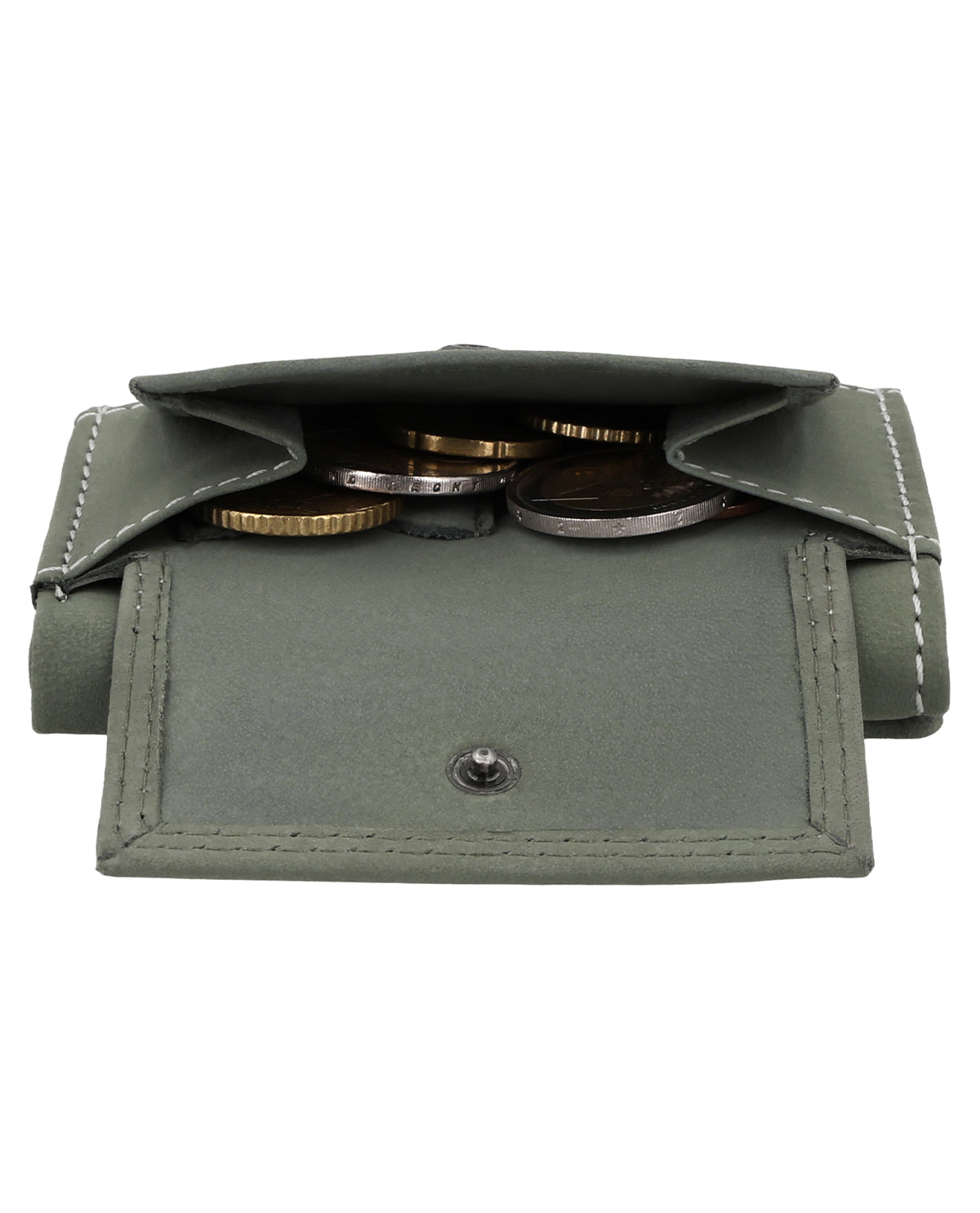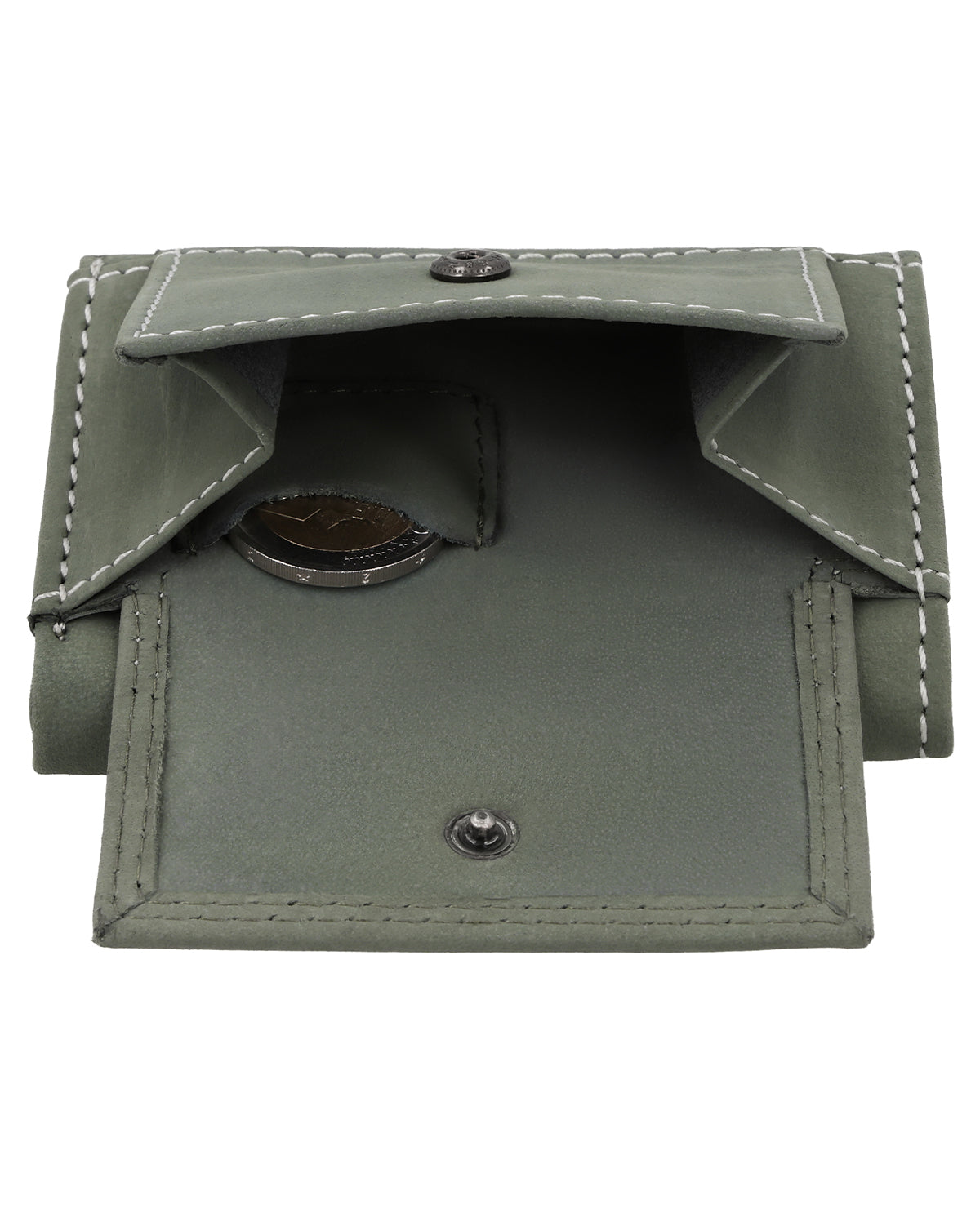"Ronald" überzeugt im Inneren durch 3 Einschubfächer, einem Geldscheinfach und einem Münzfach auf der Vorderseite, welches mit einem Druckknopf geschlossen wird. So kann nichts rausfallen und alles bleibt geordnet. Für den kleinen Alltagsmoment gibt es zusätzlich ein extra Münzfach für eine einzelne Münze – perfekt, wenn Du schnell eine passende Münze griffbereit haben möchtest. Zusätzlich verfügt "Ronald" noch über ein Einschubfach hinten - für den einfachsten Zugang.