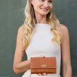 Du suchst ein klassisches, aufklappbares Portemonnaie mit genug Platz für extra viele Karten und ein extragroßes Münzfach? Aus hochwertig gegerbtem Rindsleder bietet "Gloria" Dir genau das und besticht zusätzlich durch ihren trendy Kroko-Look. Funktionalität mit der Extraportion Trend. Zusätzlich ist „Gloria“ mit einem RFID-Schutz ausgestattet, der es Unbefugten deutlich erschwert, Deine Kartendaten kontaktlos auszulesen – für mehr Sicherheit im Alltag.