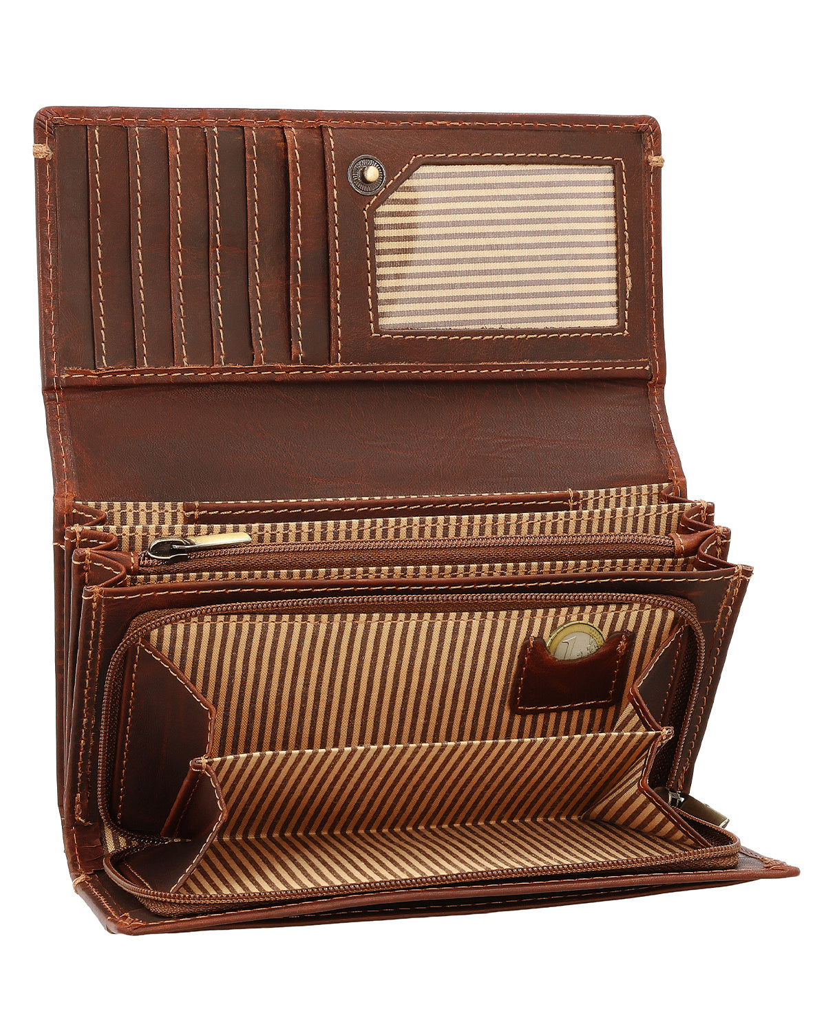 Die Geldbörse "Angelique" überzeugt mit 7 Kartenfächern, von denen eines mit einer transparenten Folie versehen ist – ideal für Ausweis oder Lieblingsfoto. Zwei Reißverschlussfächer bieten sicheren Stauraum für Münzen und andere Kleinigkeiten, während Fächer für Scheine und Quittungen für Ordnung sorgen. Besonders praktisch ist dabei das integrierte Münzfach, in dem Du eine Münze schnell griffbereit hast. So hast Du alles stets übersichtlich verstaut und gut geschützt. Dank der durchdachten Struktur und des hochwertigen Designs ist "Angelique" die perfekte Kombination aus Eleganz und Alltagstauglichkeit – eine Geldbörse, die Dich stilvoll begleitet.