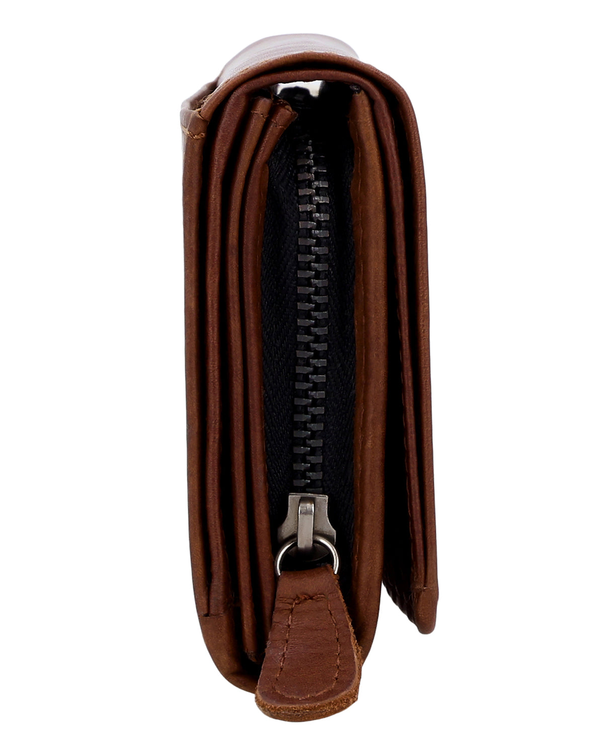 Mit unserem Portemonnaie "Gemma" hast du alles dabei: Karten, Scheine, Kleingeld und Fahrkarten finden ihren angestammten Platz. Die beiden Kleingeldfächer kannst du mit einem Reißverschluss verschließen. Zusätzlich gibt es ein extra Münzfach für eine einzelne Münze – perfekt, wenn du mal schnell eine passende Münze griffbereit haben möchtest. In "Gemma" findest du Platz für mindestenst fünf Karten, außerdem bieten wir dir noch einen Kartensteckplatz mit transparentem Sichtfenster für deinen z.B. deinen Ausweis. Deine Geldscheine sind in zwei separaten Fächern gut untergebracht. Dank integriertem RFID-Schutz sind deine Karten zudem zuverlässig vor ungewolltem Auslesen geschützt. Das restliche Portemonnaie wird durch einen Druckknopf zusammengehalten. So kommst du schnell an dein Geld, es ist aber trotzdem vor dem Hinausfallen geschützt. Die Geldbörse besteht aus robustem Rindsleder und ist so ein wahrer Alltagsheld: perfekt für Vieleinkäufer und die, die es noch werden wollen!