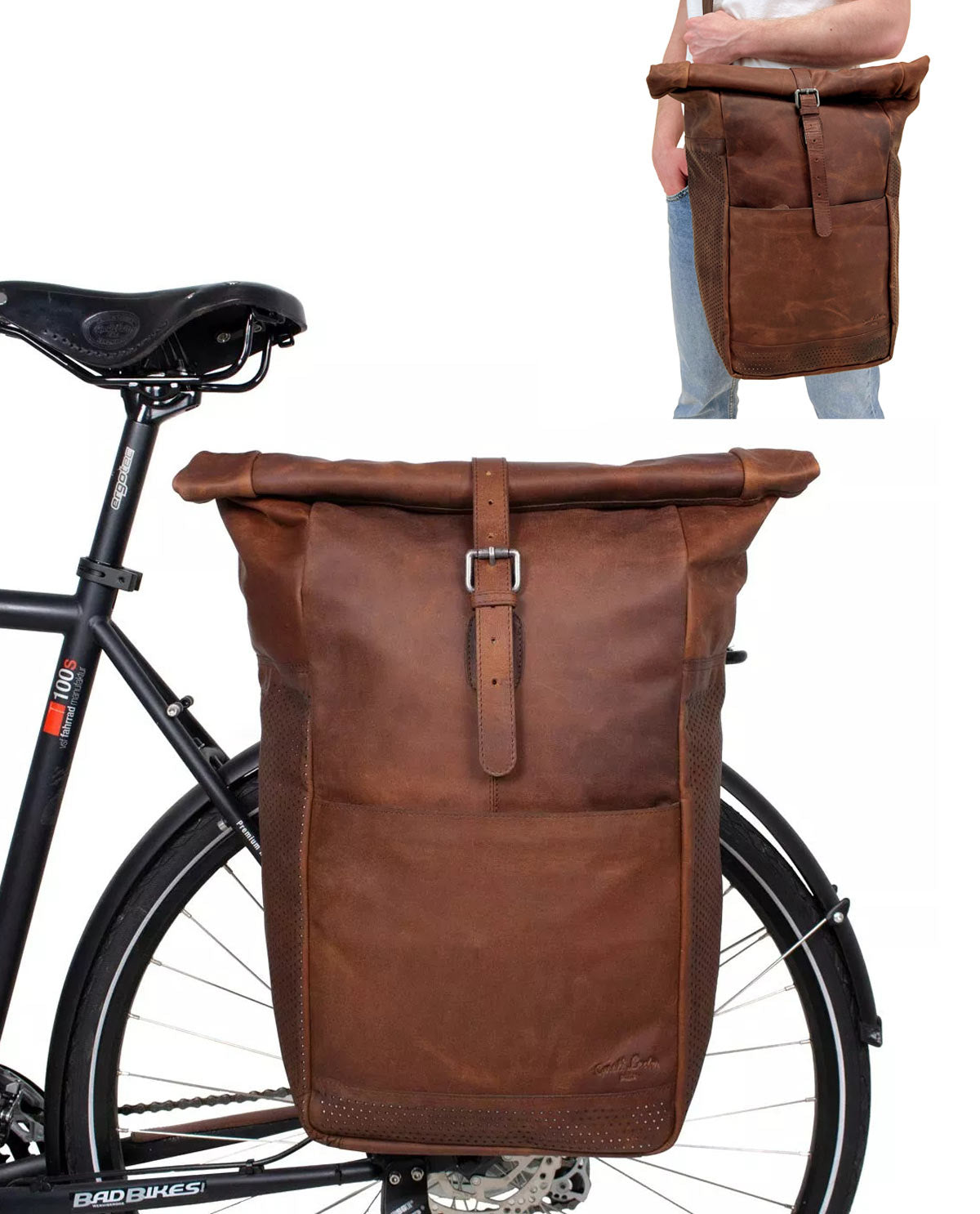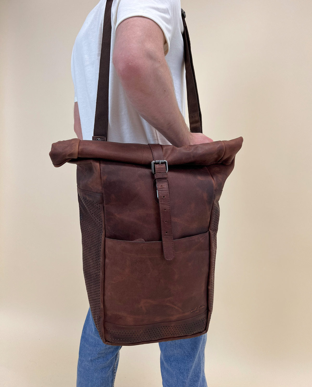 Hier kommt Dein neuer Lederliebling: "Miquel I." überzeugt mit echtem Leder in extra robuster Verarbeitung und einem durchdachten Rolltop-Design. Dank des justierbaren Gürtelschnallenverschlusses ist Dein Fahrradabenteuer ebenso sicher wie stylisch. Ob Laptop, Notizbücher oder die tragbare Musikbox für den Feierabend im Park – mit "Miquel I." hast Du alles griffbereit. Mobilität trifft auf Funktionalität, ohne dass Du auf Stil verzichten musst. Einfach aufs Rad, losfahren und alles im Griff haben.