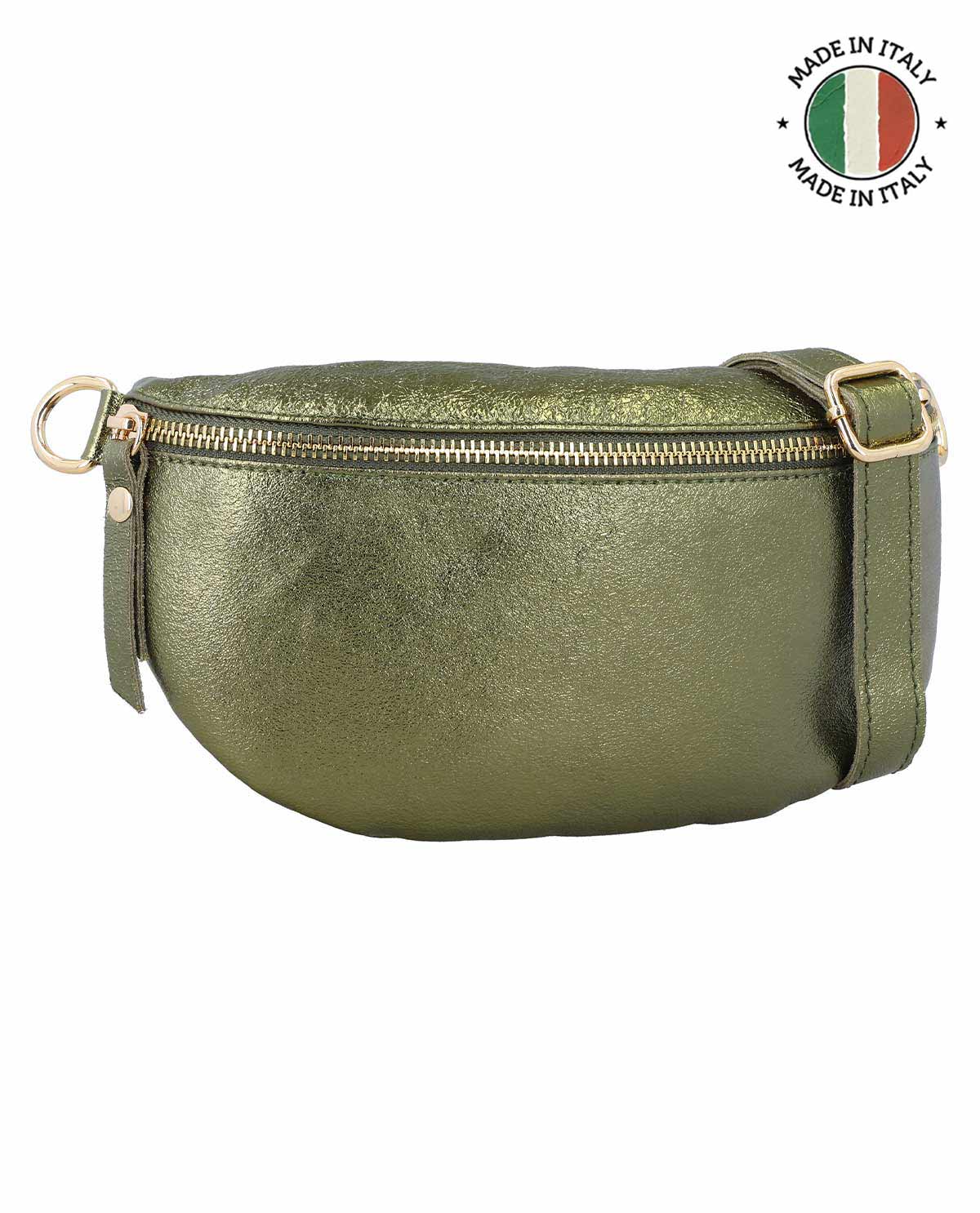 Gürteltasche Bauchtasche Umhängetasche Crossbody Tasche Ledertasche Damen Grün Glänzend Leder - Made in Italy