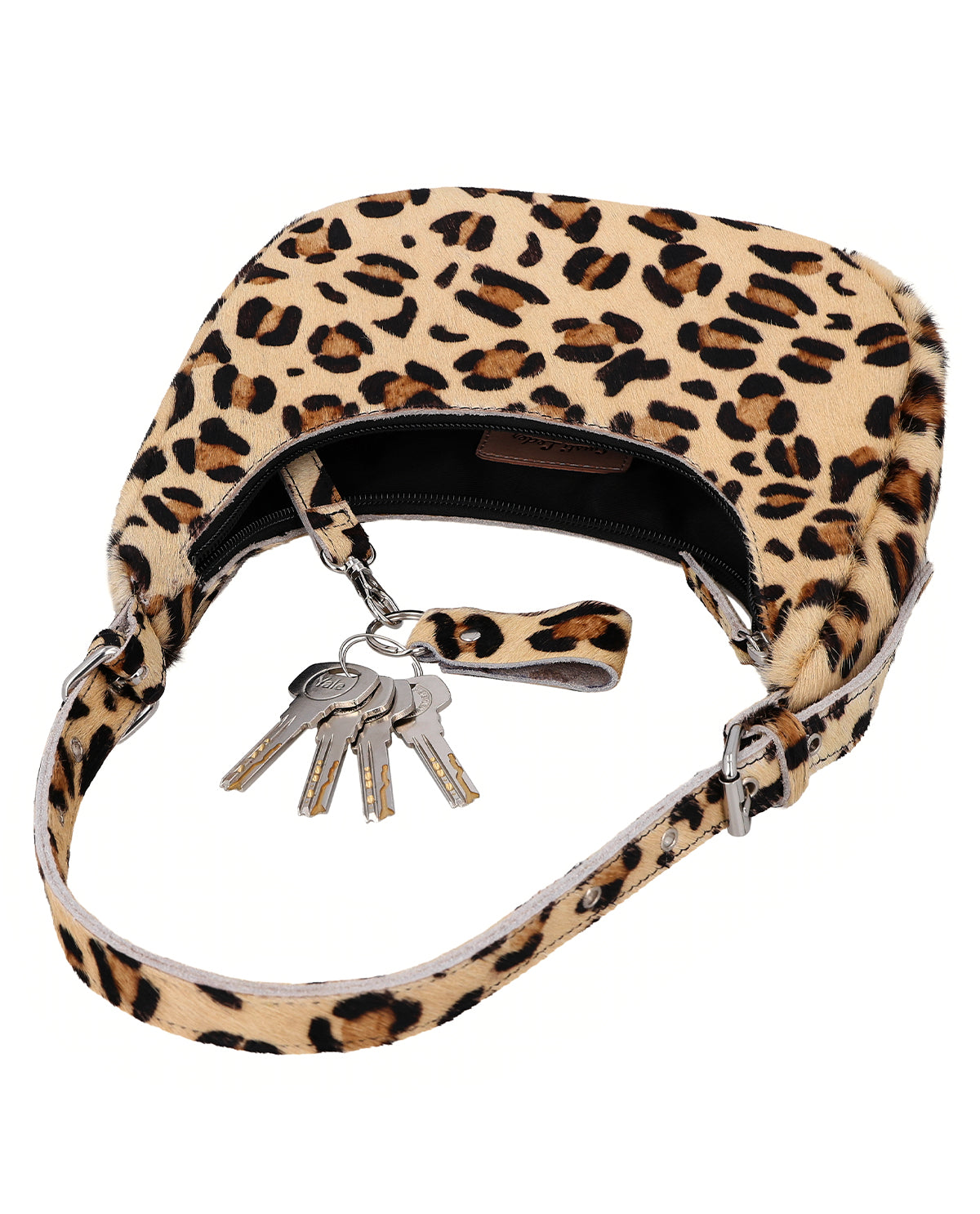 Handtasche mit AirTag-Fach, Schlüsselanhänger und Animal-Print