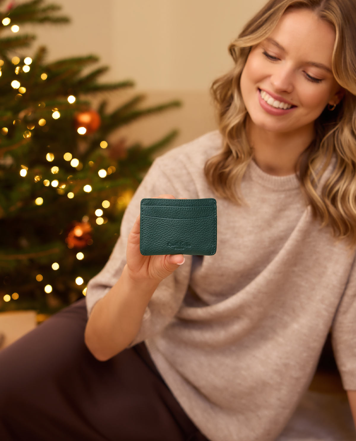 Praktisch und stilvoll – das "Qani" Kartenetui aus dunkelgrünem Leder