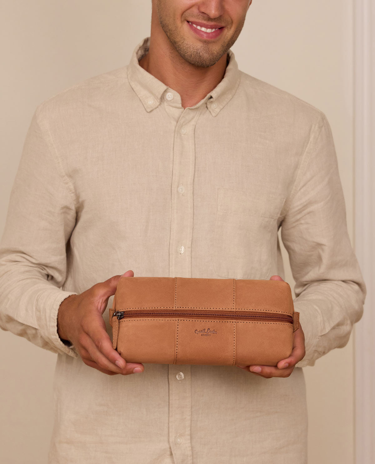 Mit der Kosmetiktasche "Marcin“ aus hochwertigem Leder erhältst du ein praktisches Accessoire, das sowohl funktional als auch stilvoll ist. Ihr elegantes Design und die kompakte Größe machen sie zu deinem idealen Begleiter – sei es auf Reisen, im Alltag oder für den schnellen Touch-up unterwegs. Die Tasche bietet genug Platz für all deine Beauty-Essentials, von Lippenstift bis Parfüm, und hält alles sicher an Ort und Stelle. Mit "Marcin“ bist du immer perfekt vorbereitet und behältst den Überblick.