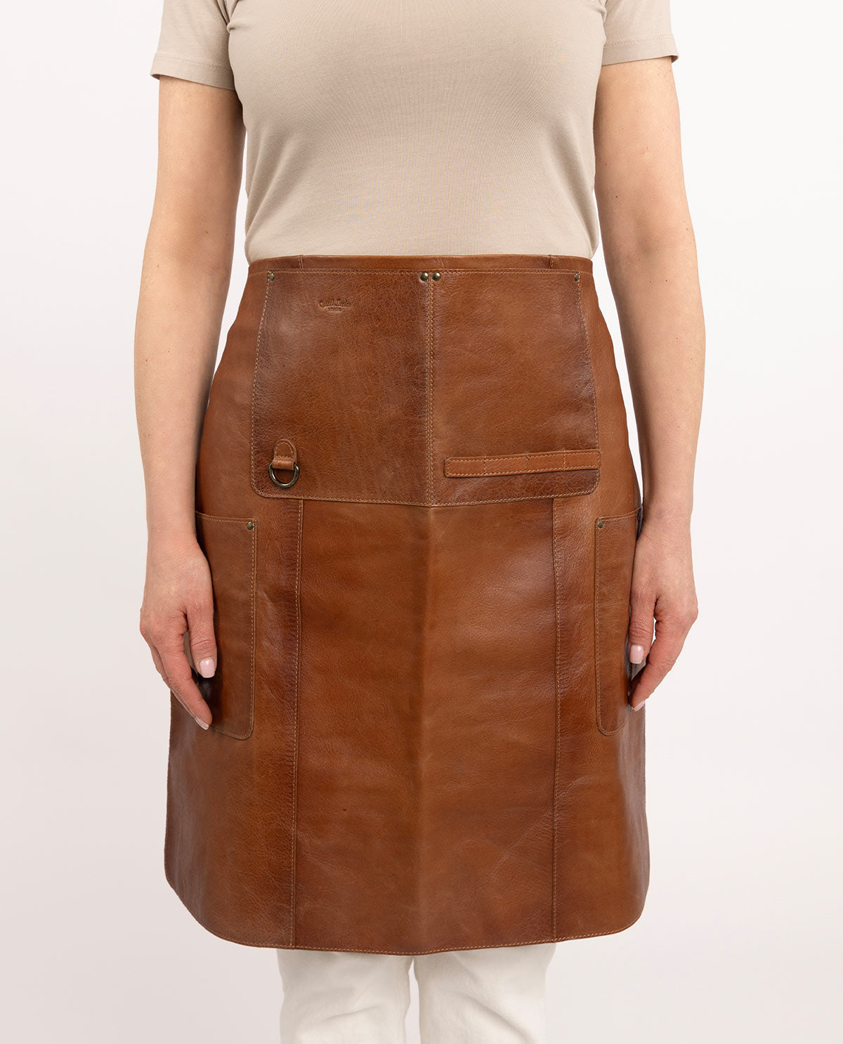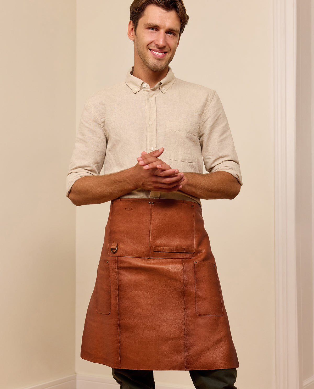 Die "Marica" Friseurschütze ist der ideale Begleiter für alle, die Wert auf Funktionalität und Stil im Arbeitsalltag legen. Gefertigt aus hochwertigem echtem braunem Leder, kombiniert dieser Schütze robuste Materialien mit einem eleganten Design. Die langen Lederseitenriemen ermöglichen es Dir, die Schürze bequem um Deine Taille zu binden, wodurch Du sie perfekt an Deine Körperform anpassen kannst. So hast Du immer einen sicheren Sitz, ganz gleich, wie intensiv Dein Arbeitstag ist. Die "Marica" schützt zudem Deine Kleidung zuverlässig, besonders bei Tätigkeiten wie dem Haare färben oder anderen Friseurarbeiten, bei denen Flecken leicht entstehen können.