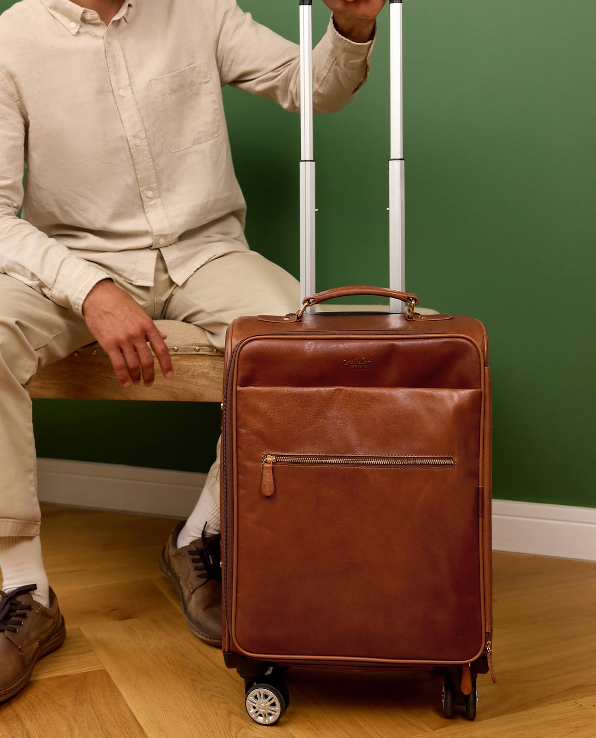 Reisetrolley Koffer Reisetasche mit Rollen Damen Herren Designed in Berlin Braun Leder