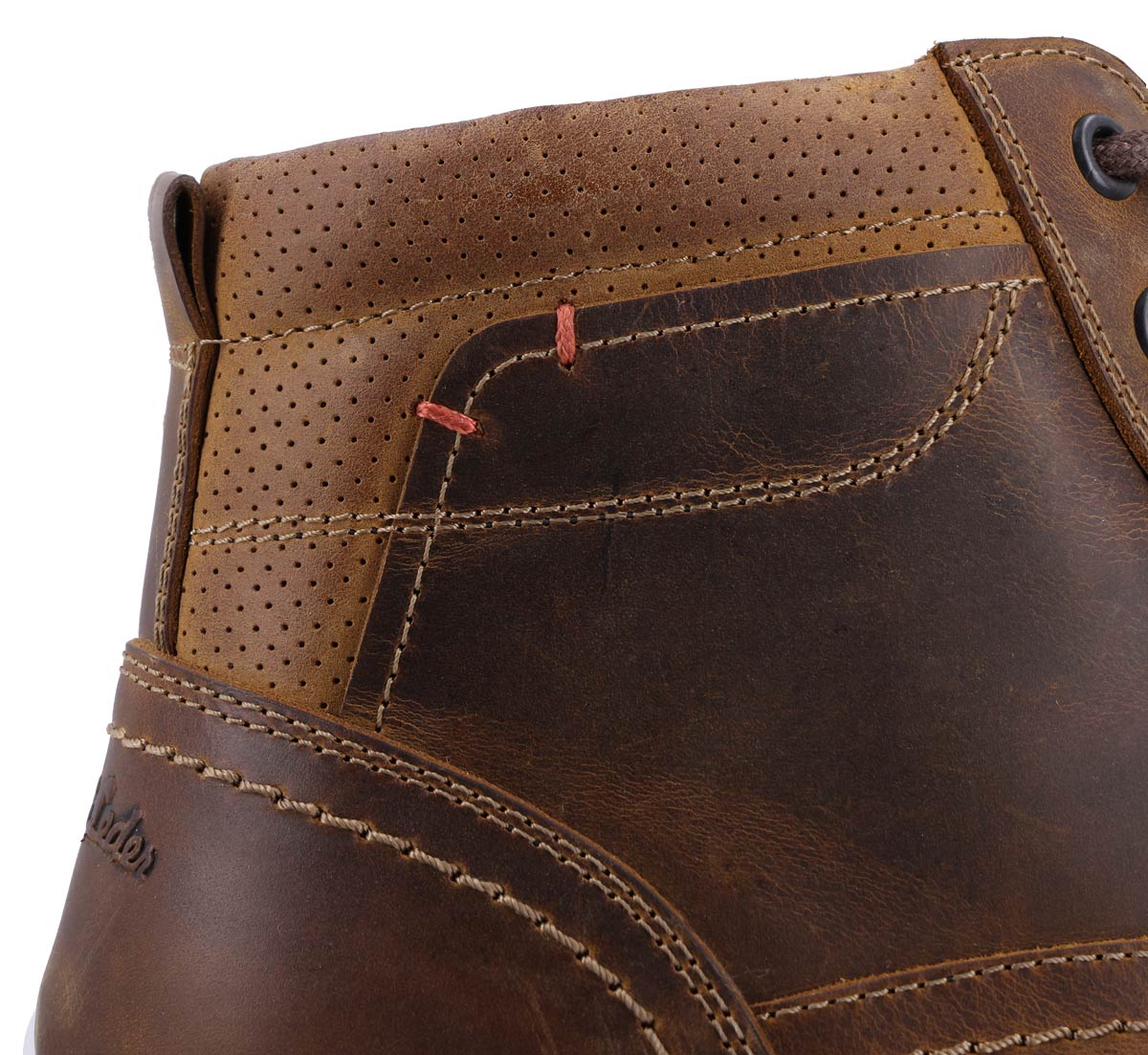 Im Inneren überzeugt "Oberon" mit einem karierten Textilfutter und einer Kombination aus Leder- und Stoffeinsätzen, die Atmungsaktivität und Tragekomfort garantieren. Die Innensohle aus Rindsleder bietet ein angenehmes Laufgefühl, während die Sohle aus Polyurethan Flexibilität und Stabilität kombiniert – ideal für lange Tage auf den Beinen. Ein geprägtes Gusti Leder Logo an der Ferse unterstreicht die hochwertige Verarbeitung und den zeitlosen Stil. Mit "Oberon" genießt Du einen Schuh, der Eleganz, Komfort und handwerkliche Qualität in perfekter Harmonie vereint – für den modernen Mann mit Sinn für Stil.