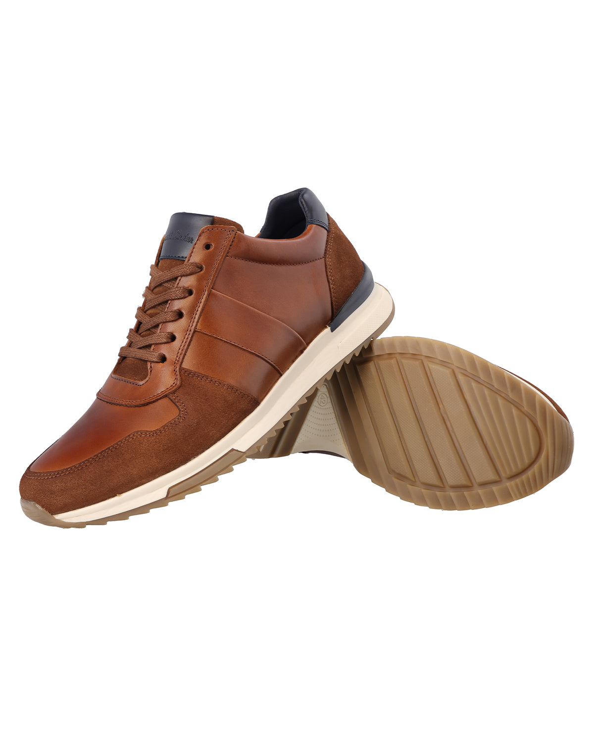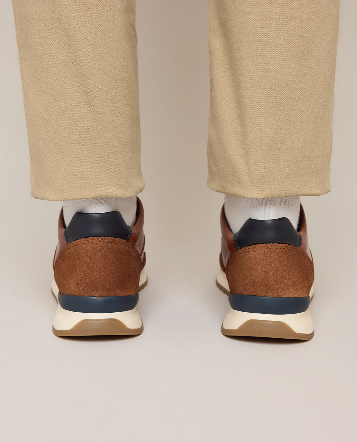Mit "Ennio" trägst Du Schuhe, die mühelos den Spagat zwischen lässigem Alltag und stilvollem Auftritt schaffen. Das durchdachte Design kombiniert glattes Leder mit samtigen Wildleder-Elementen und sorgt so für eine raffinierte, moderne Optik. Die mehrteilige Konstruktion mit sichtbaren Nähten unterstreicht den handwerklichen Charakter und garantiert zugleich Langlebigkeit. Die abgerundete Schuhspitze mit einer doppelten Lederschicht aus Glattleder und Wildleder sorgt für Stabilität und optische Tiefe, während die flachen, breiten Baumwollschnürsenkel in Braun einen stilvollen Akzent setzen. Der Lederüberzug auf der Zunge mit eingeprägtem Logo verleiht "Ennio" ein hochwertiges Finish.