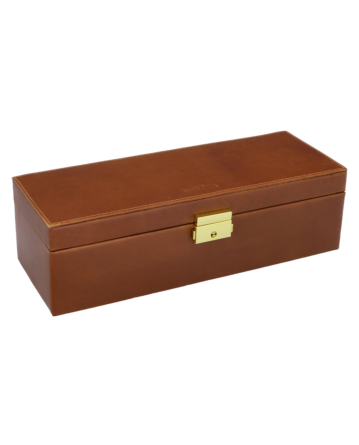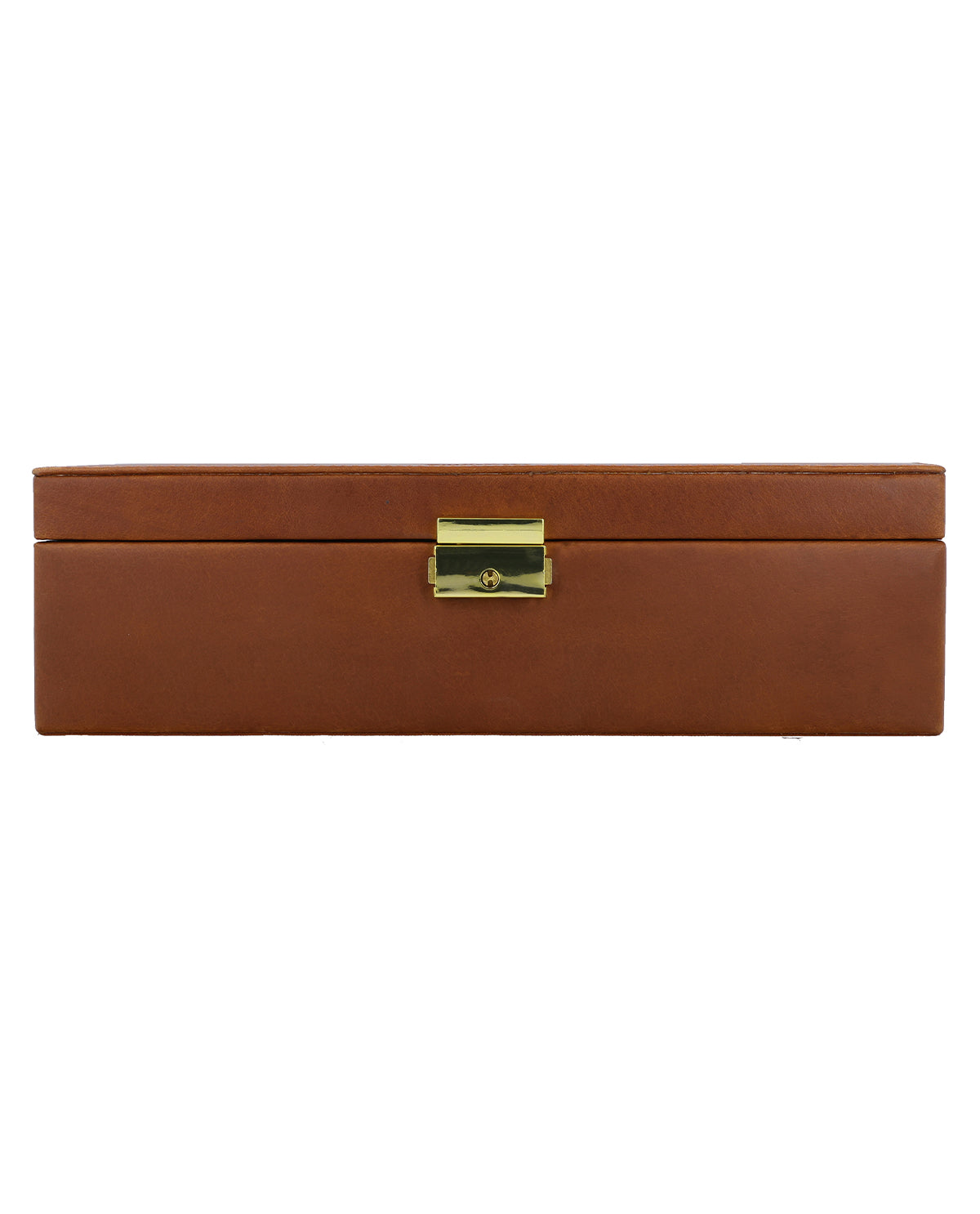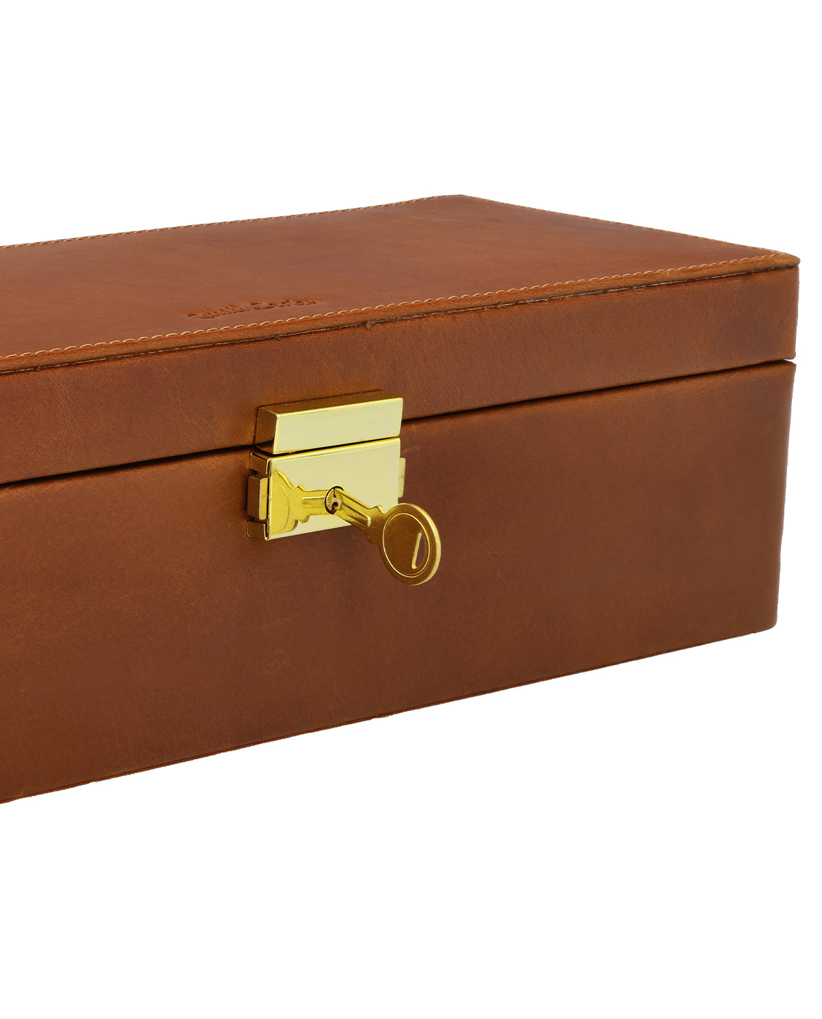 Mit "Marcel" bewahrst Du Deine Lieblingsuhren sicher, elegant und stilvoll auf. Die Uhrenbox aus hochwertigem Leder mit glatter, edler Oberfläche vereint anspruchsvolles Design mit funktionaler Raffinesse. Das luxuriöse Äußere verleiht ihr eine zeitlose Ausstrahlung, während das weiche, stoffgefütterte Innere Deine Uhren zuverlässig vor Kratzern und Staub schützt. Mit ihren klaren Linien und der warmen Lederstruktur ist "Marcel" nicht nur ein praktischer Aufbewahrungsort, sondern auch ein dekoratives Highlight auf jedem Nachttisch oder Regal.