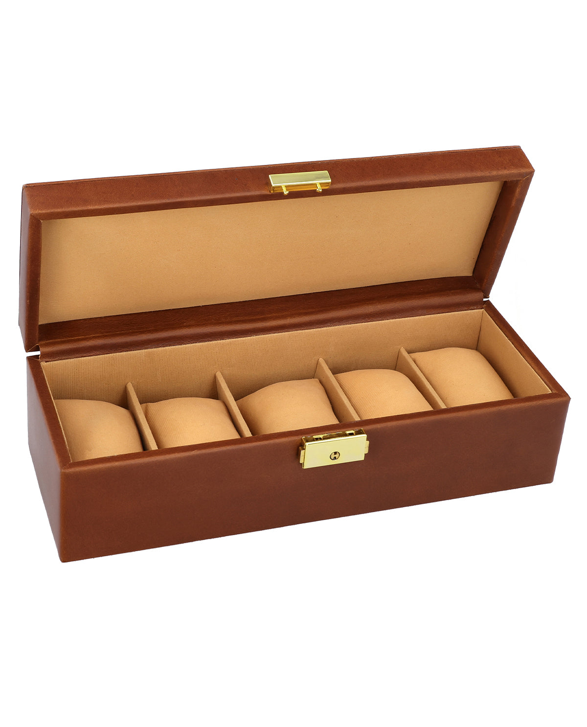 Im Inneren bietet "Marcel" fünf gepolsterte Fächer mit herausnehmbaren Kissen, auf denen Deine Uhren sicher und übersichtlich liegen. Ob sportliche Modelle oder edle Klassiker – jede Uhr findet ihren Platz. Der stabile Verschluss in Goldoptik sorgt dafür, dass alles geschützt bleibt, selbst auf Reisen. "Marcel" ist damit ideal für Sammler, Liebhaber feiner Accessoires oder als stilvolles Geschenk für besondere Anlässe. Eine Box, die Eleganz, Sicherheit und Qualität perfekt vereint – für Uhren, die mehr verdienen als nur eine Schublade.