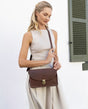 In dieser klassischen Handtasche mit ihren zwei zusätzlichen Innenfächern nimmst Du alles mit, was Du im Alltag oder für einen Abend mit Deinen Liebsten brauchst! Nicht nur Dein aktuelles Lieblingsbuch findet hier seinen Platz. Besonders praktisch: Im Inneren befindet sich ein Schlüsselanhänger, mit dem Du Deine Schlüssel sicher befestigen und dennoch schnell zur Hand hast. Dazu kommt ein verstecktes AirTag-Fach, damit Du “Zoey” unterwegs jederzeit im Blick behalten kannst. Für schnellen Zugriff unterwegs verfügt “Zoey” außerdem über äußere Steckfächer, in denen Du Kleinigkeiten griffbereit verstauen kannst. “Zoey” kannst Du auch einfach mit auf die nächste Party nehmen, denn ihr Look ist nicht nur elegant, sondern zugleich auch partytauglich. Der matt-goldene Schnappverschluss ist einfach zu handhaben und macht den edlen Vintage-Look von “Zoey” komplett! Zusätzlich ist ein Gravur-Patch integriert, damit Du “Zoey” mit einer persönlichen Widmung versehen kannst.