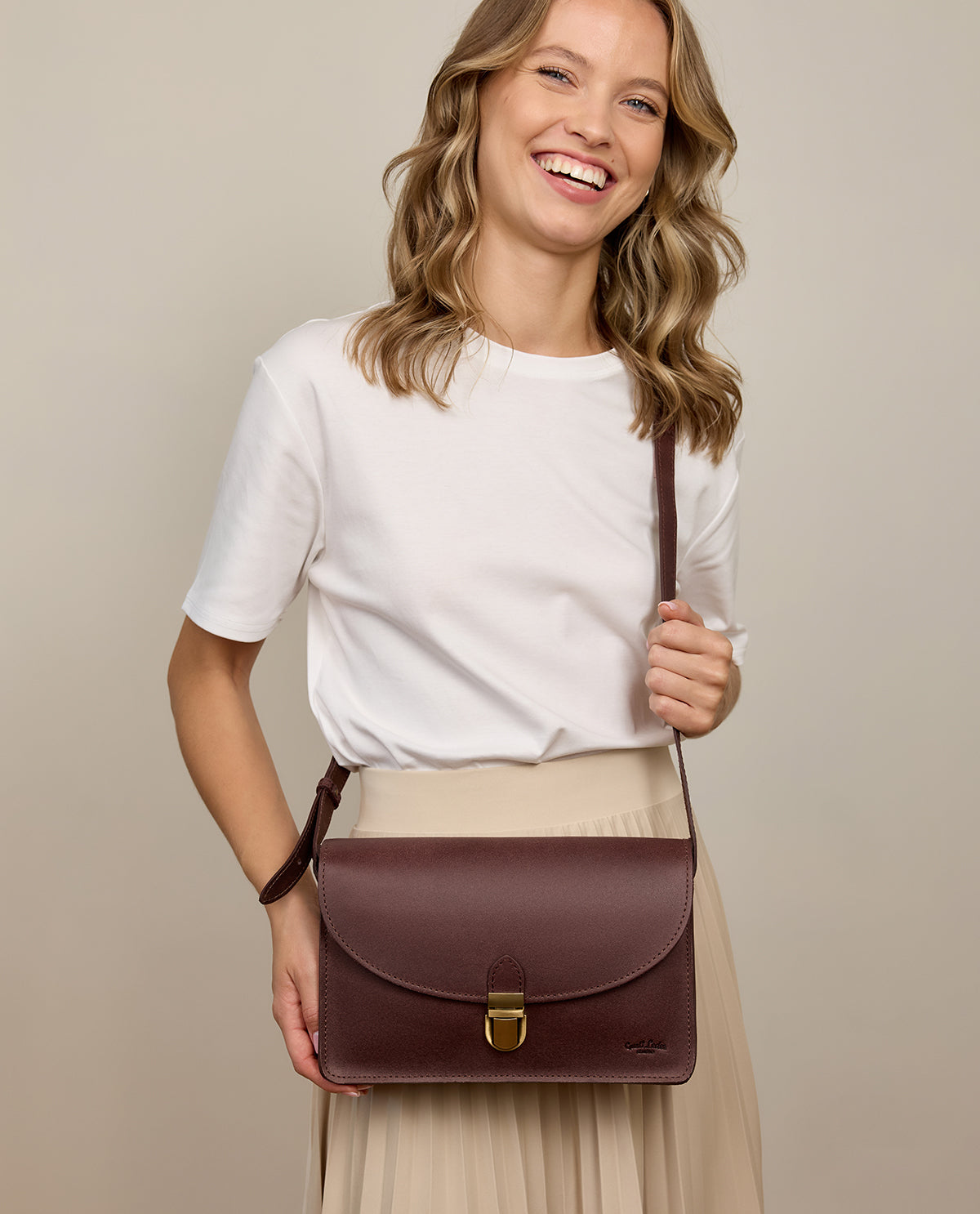 Durch ihr schlichtes und zeitlos-elegantes Design bist Du mit dieser hochwertigen und widerstandsfähigen Rindsleder-Handtasche stilvoll unterwegs – egal, wohin es Dich verschlägt! Mit der richtigen Pflege gewinnt die Tasche im Laufe der Zeit sogar noch an Charme und wird Dich sicher viele Jahre begleiten.