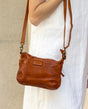 Veronika ist von der Größe her eher eine Clutch als eine klassische Handtasche, aber doch ein ziemliches Raumwunder! Die kleine Umhängetasche bietet in ihren gleich drei Fächern viel mehr Platz, als vermutet. Alle Fächer sind mit Reißverschlüssen verschließbar, sodass nichts aus der kleinen Tasche hinausfallen kann. Ganz geschwind kannst du "Veronika" von ihrem Trageriemen befreien und hast eine elegante Clutch gezaubert. Perfekt für einen kleinen Ausflug zum Spazieren gehen oder zum Kaffeedate mit deiner besten Freundin oder dem süßen Typen von nebenan. Aber auch abends im Club macht Veronika eine gute Figur und begleitet dich gern auf lange Nächte mit lauten Bässen und wilden Tanzmoves. "Veronika" kommt in verschiedenen Farben daher - bestimmt auch in deiner Lieblingsfarbe. Das Rindsleder sieht dazu ziemlich cool aus und wird die Blicke auf dich ziehen!