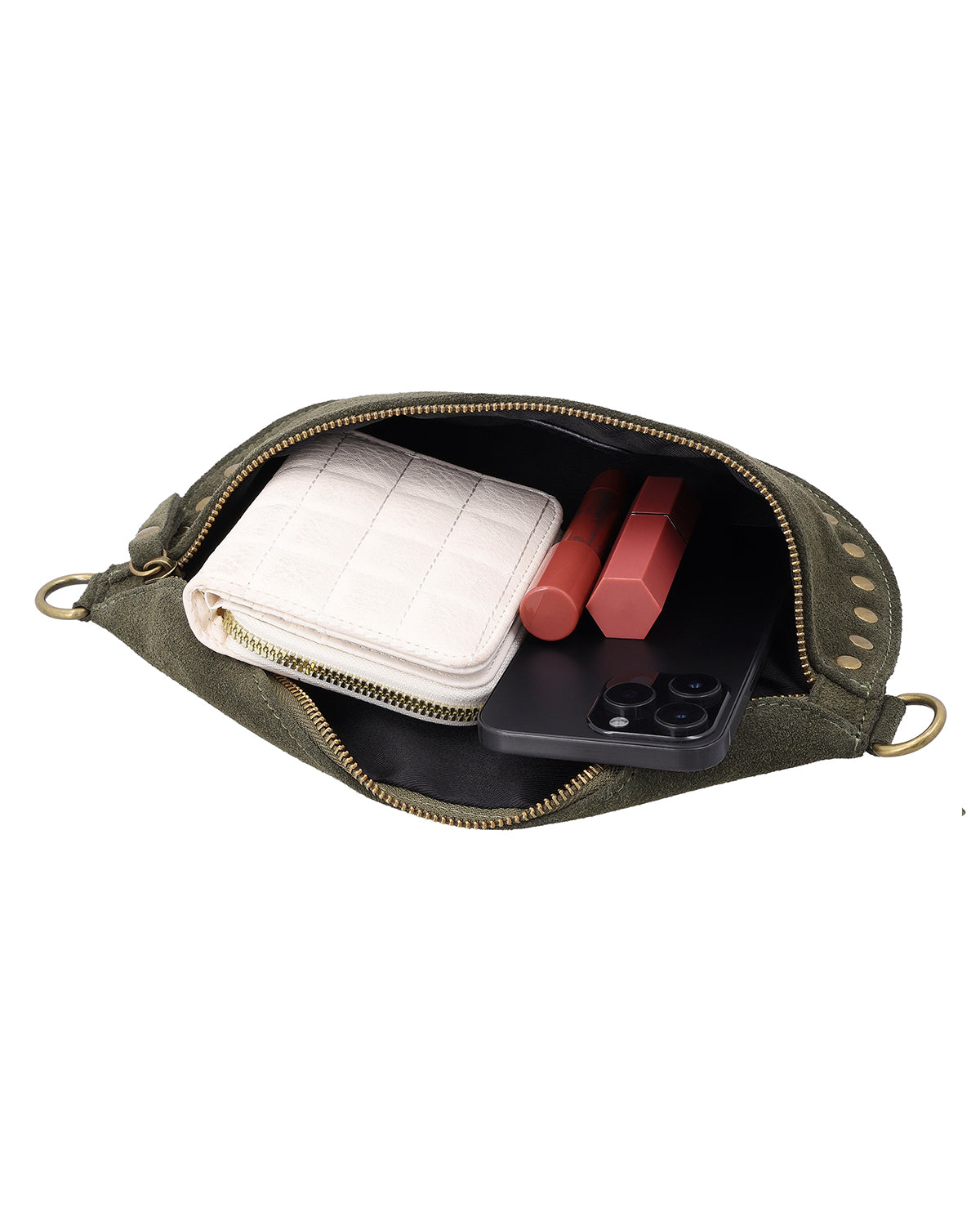 Die kleine Umhängetasche „Tatjana“ ist eine Lederhandtasche für Damen, die im Alltag gern stilvolle Akzente setzen. In einem eleganten Grünton gehalten und mit goldenen Nieten veredelt, wirkt diese Ledertasche modern und feminin. Ob beim Stadtbummel, auf Reisen oder am Abend – „Tatjana“ bleibt kompakt, bietet Platz für Deine wichtigsten Essentials und ergänzt Deinen Look mit einem Hauch Eleganz. Diese Umhängetasche aus Leder verbindet Alltagstauglichkeit mit einem Detail, das sofort ins Auge fällt.