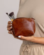 Kosmetiktasche Utensilientasche Kulturbeutel Waschtasche Schminktasche Kulturtasche Braun Leder
