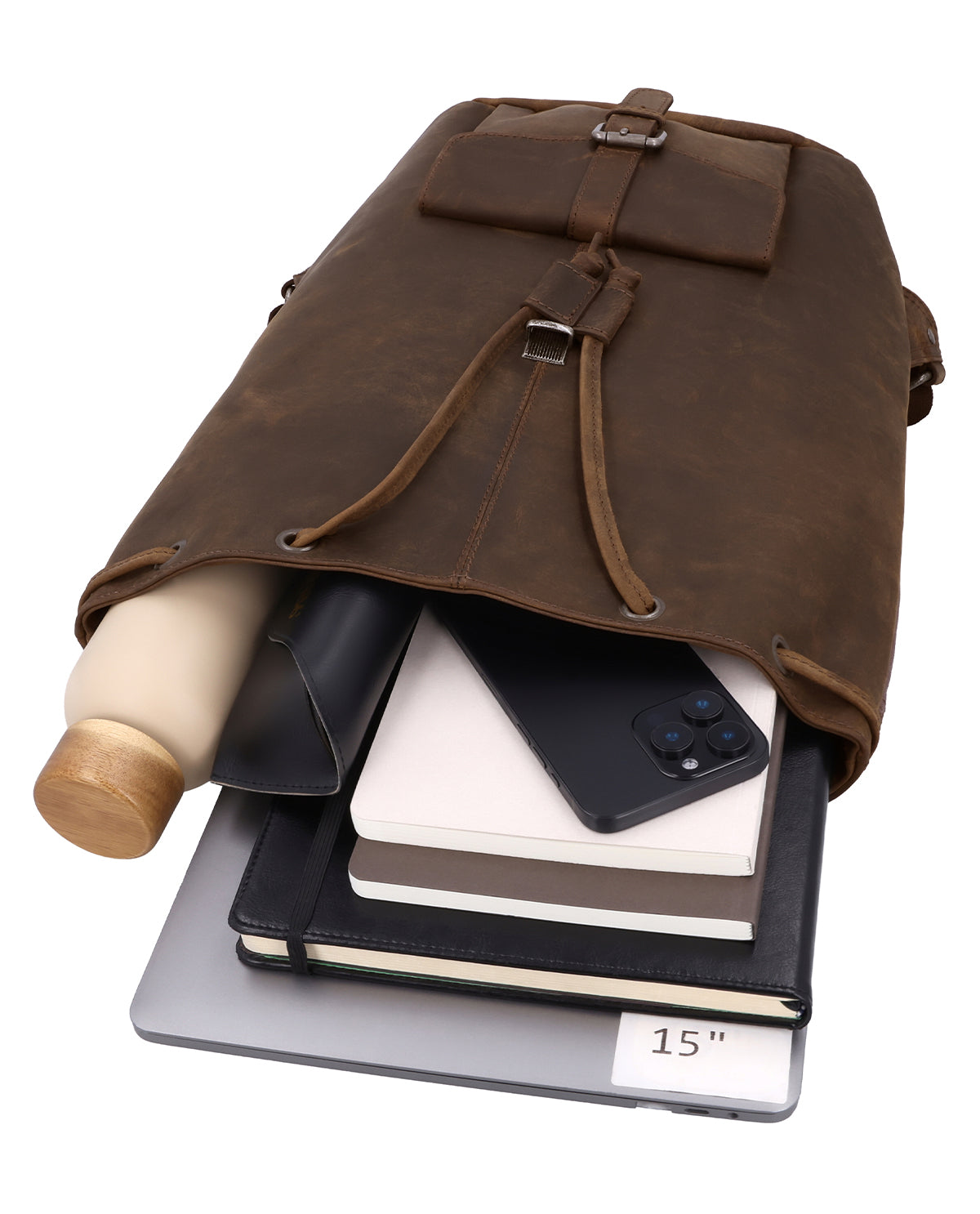 This spacious robust real leather backpack doesn’t just look good, it’s versatile and comfortable too! “Nolan’s” spacious main compartment has more than enough space for your 15-inch laptop, A4 folders and notebooks, etc., as well as for your hiking equipment and picnic. The drawstring and thorn-buckle-style snap lock mean that everything is kept safe and sound in your backpack, so you won’t lose anything when you’re on the go. There’s an extra zipped pocket inside which offers you extra storage space for your valuables, like your wallet, keys, etc. “Nolan” also has an extra patch pocket with a magnet closure where you can keep things you need quickly, like your tissues, sanitiser, gum, snacks, and more. “Nolan” is lined with water-resistant polycotton, while the back of the bag and the underside of the adjustable shoulder straps are padded with a colour-coordinated canvas, offering you extra comfort, no matter where you are.