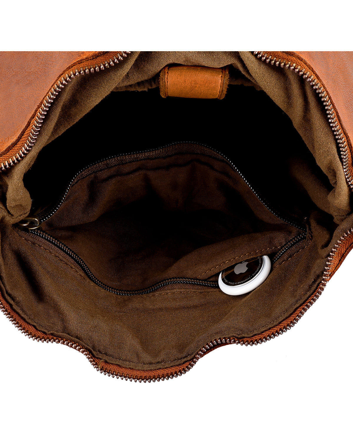 The "Aileen" backpack combines functionality with a modern, timeless design and is made from high-quality, washed leather that gives it an authentic vintage look. Inspired by the vibrant Berlin city flair, this backpack accompanies you stylishly every step of the way – whether in everyday life, on trips, or at work. Its robust construction guarantees you durability, while the thoughtful design ensures an elegant appearance. Additionally, "Aileen" features an integrated AirTag compartment, so you can easily locate your backpack at any time.