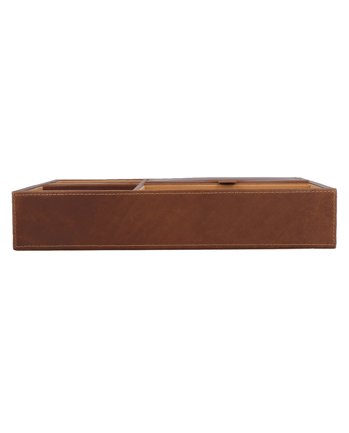 A special highlight of "Bianka" is the compartment with a foldable lid, which is ideal for discreetly storing small items. The interior is lined with a soft, light fabric that not only provides a harmonious contrast but also gently protects your accessories. Whether in the home office, at work, or on the desk at home – "Bianka" is more than just an organizer. It is a stylish statement for order, quality, and attention to detail.