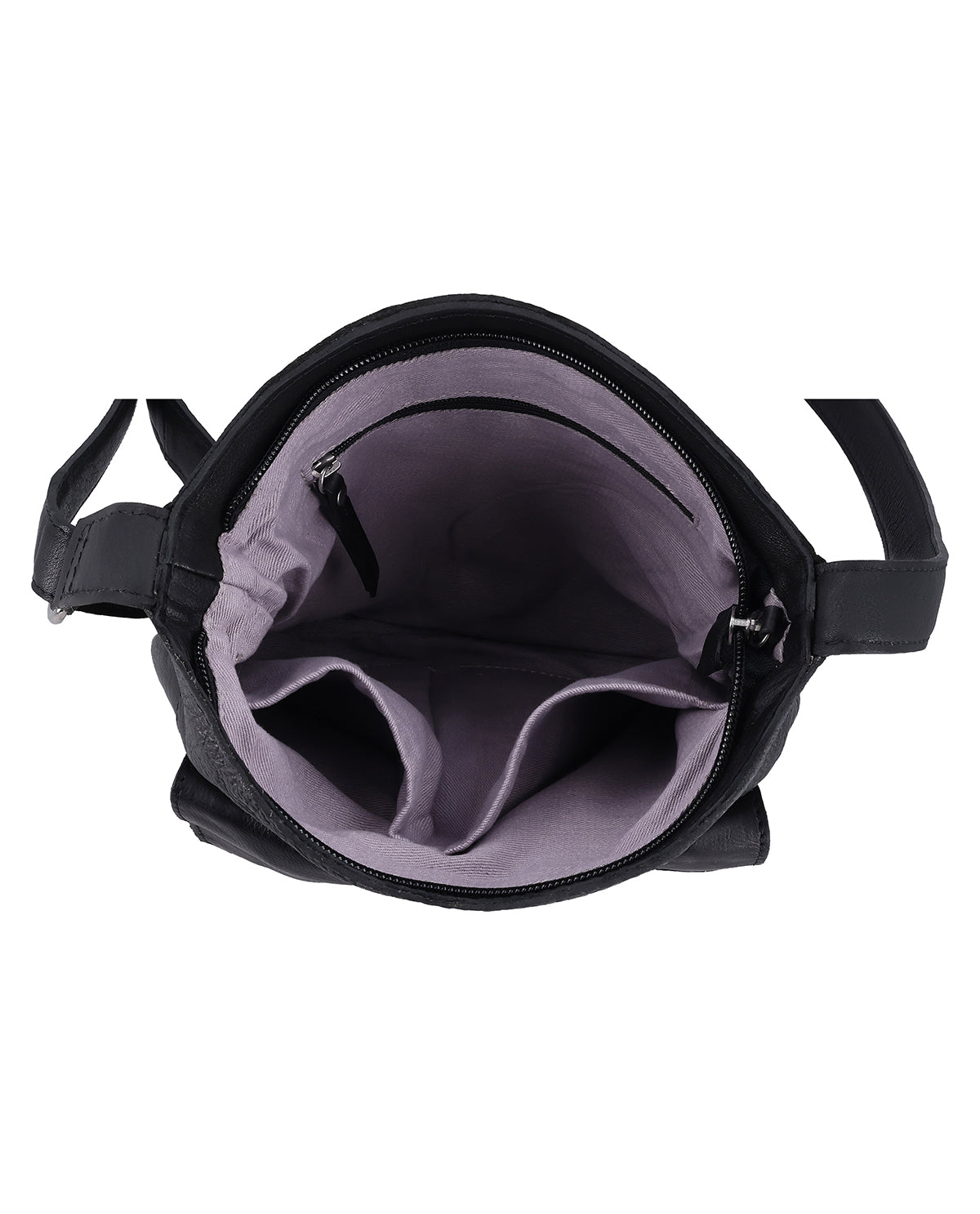 The small "Rikke" handbag is a black leather handbag for women that stands out thanks to its softly draping leather. The natural material gives the bag a casual elegance that effortlessly fits into your everyday life. The outer flap pocket with a magnetic closure gives you quick access to essentials, while one main compartment with a zipper ensures security. With its short handle and adjustable shoulder strap, "Rikke" can be carried flexibly—just the way your day calls for.