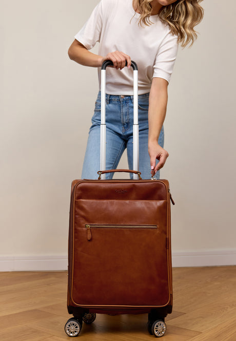 Practical and elegant – the "Chester" toiletry bag made of brown leather